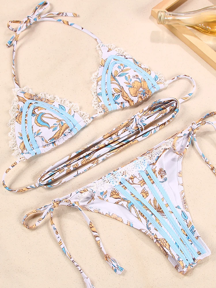 Zrtak кружевные бикини, сексуальный купальник на бретельках, купальник с длинными бретельками, женский купальный костюм, летняя пляжная одежда, комплект бикини с принтом 2022