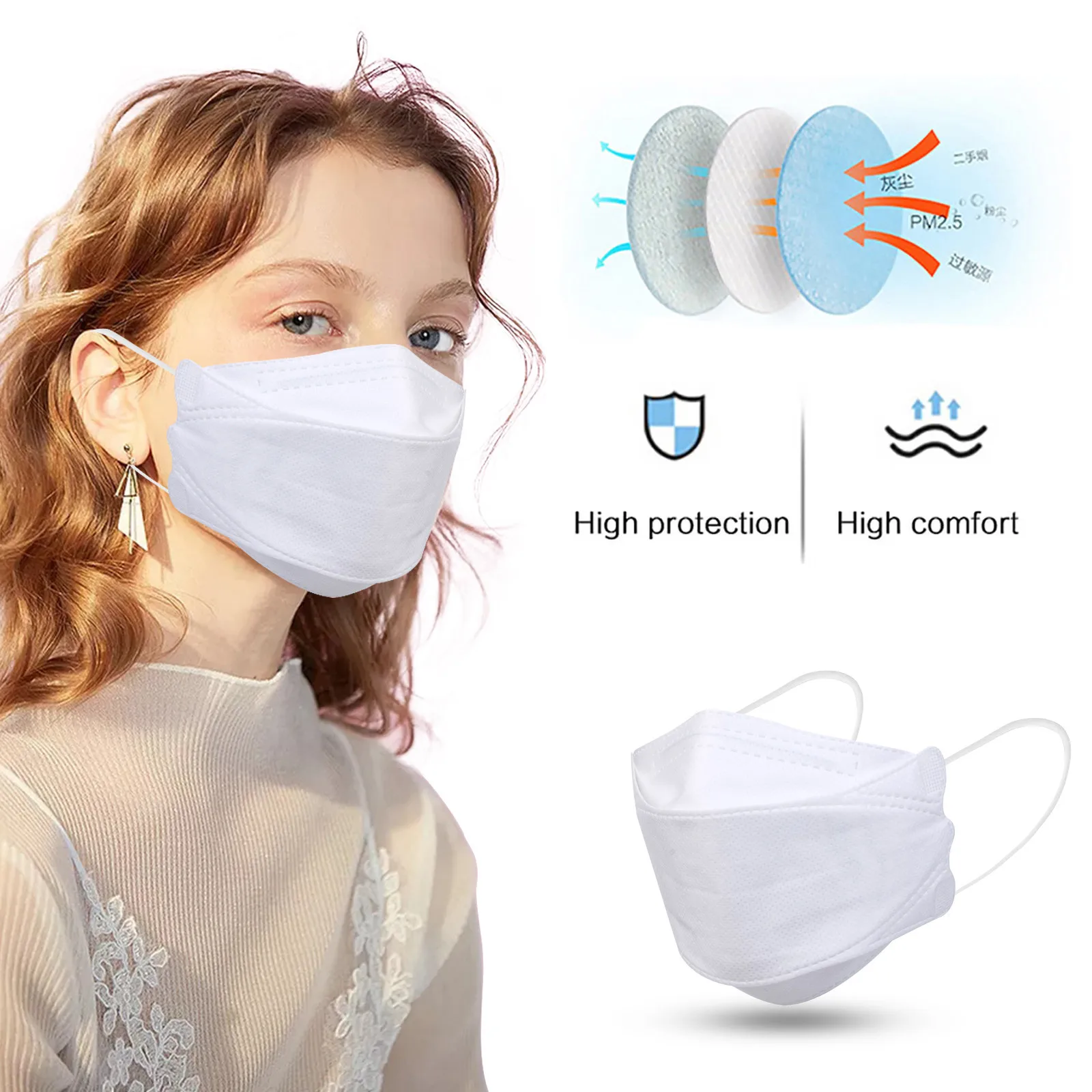 110501005001000 шт. белая маска в виде рыбы, маска для взрослых для улицы из нетканого материала ffp2reusable, защитная маска CE, маска унисекс