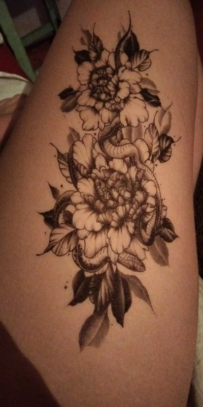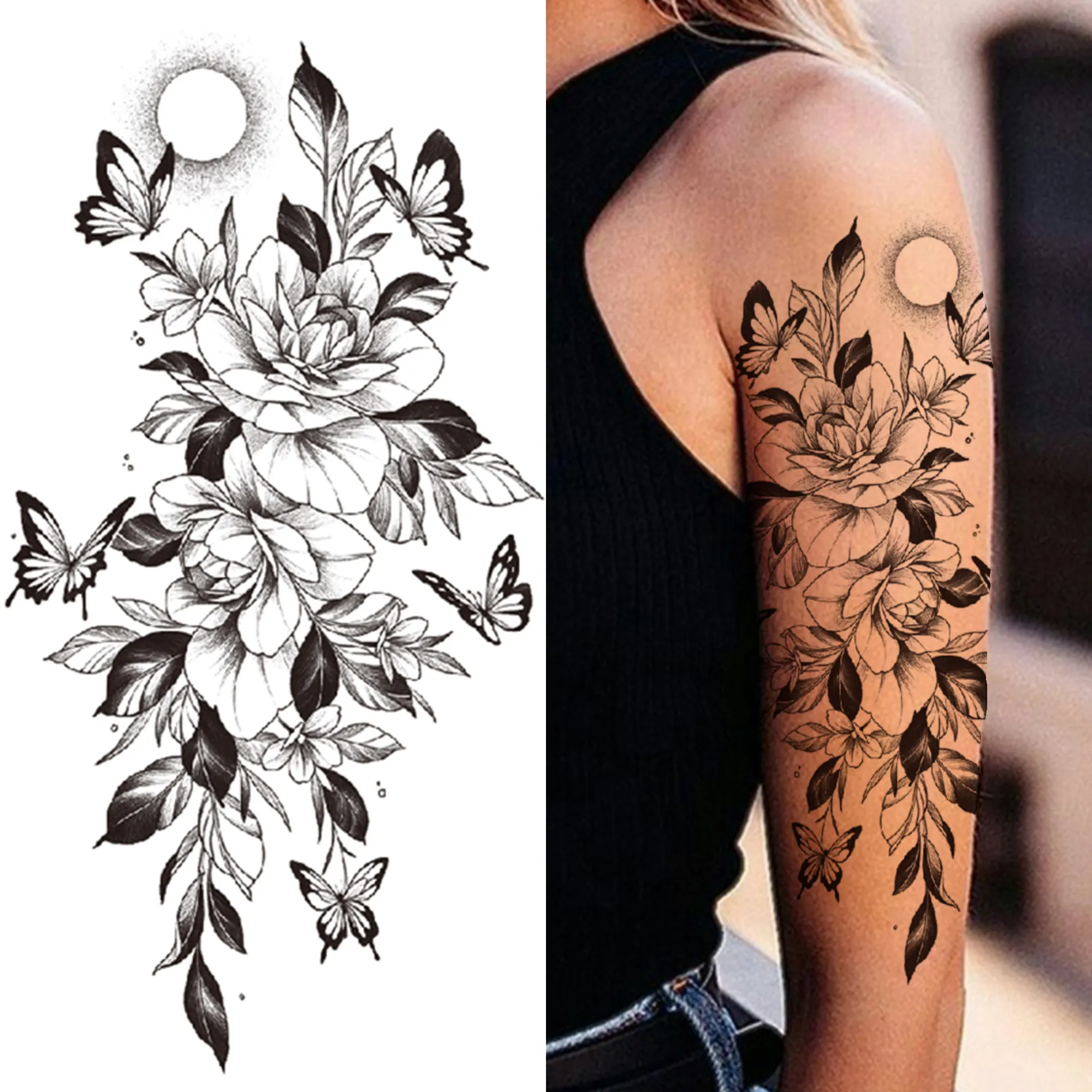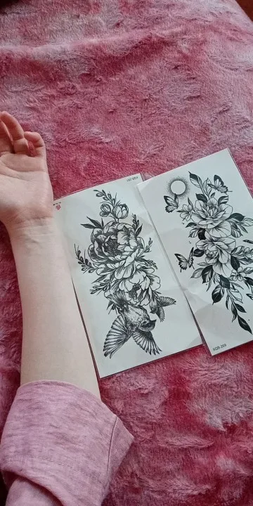 Временная татуировка череп смерти, цветок для женщин, девушек, от змей, птиц, татуировка с пионами, наклейка, Черные искусственные цветы, сексуальные Переводные татуировки для взрослых