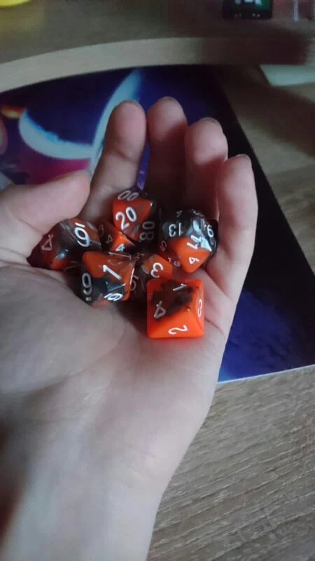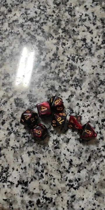 Они такие милые! Я купил их с другим набором из той же компании (также на фото), и они выглядят очень красиво. Они немного задерживались в пути, поэтому им потребилось много времени, чтобы добраться сюда, но я думаю, что это стоит ожидания. Мне нравится красный и черный мраморный цвет, он идеально подходит для игры в едкий или скрытый персонаж :)