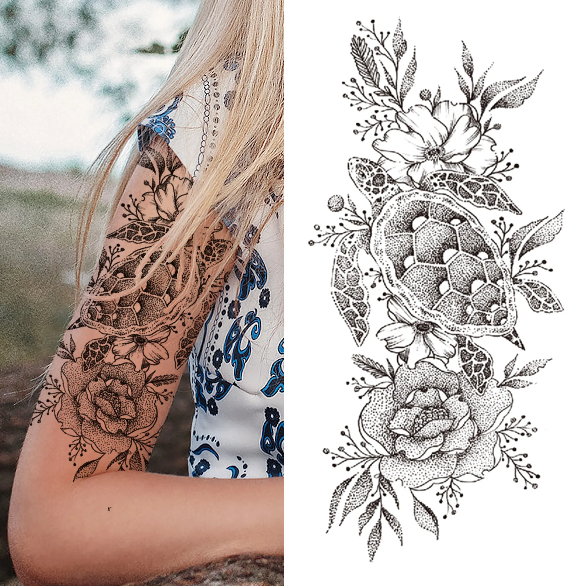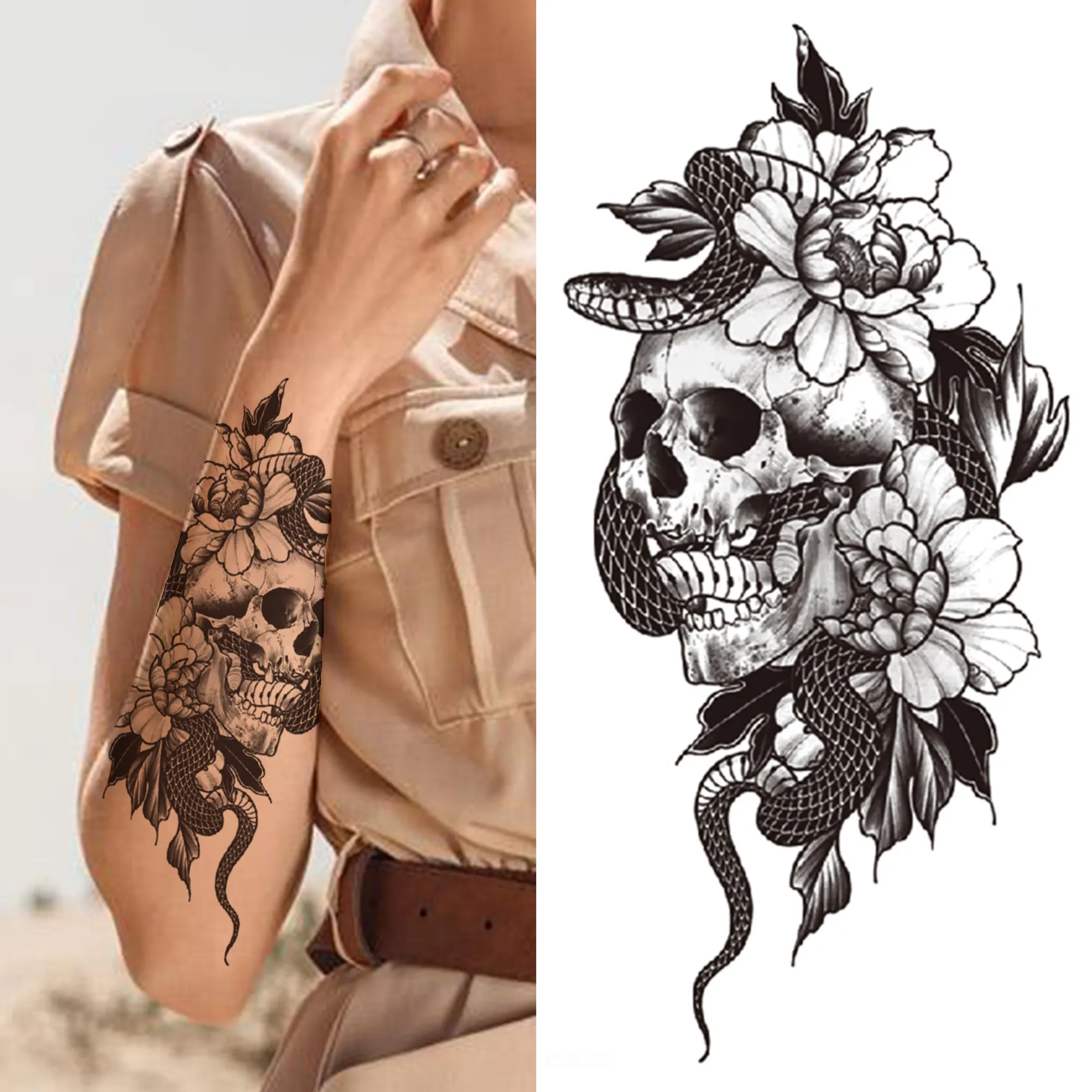 Цветок, змея, временные татуировки для женщин, девушек, череп смерти, поддельные татуировки розы, наклейка, черная пота, флора, Переводные татуировки