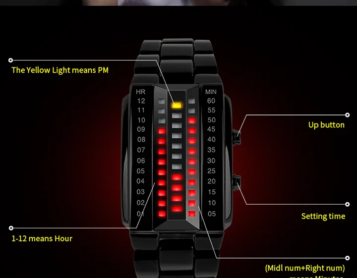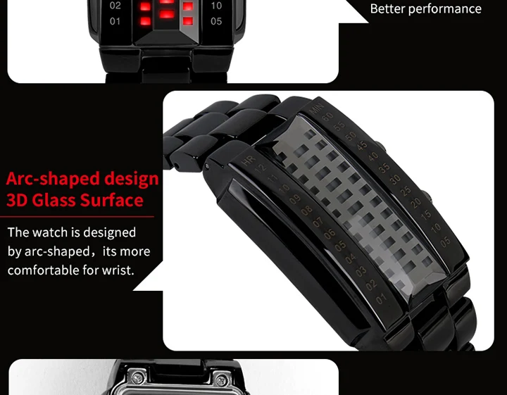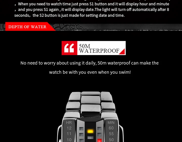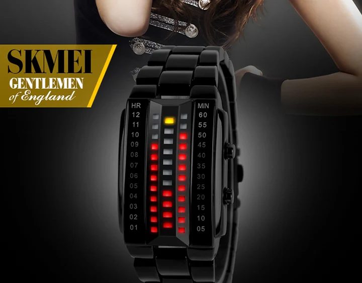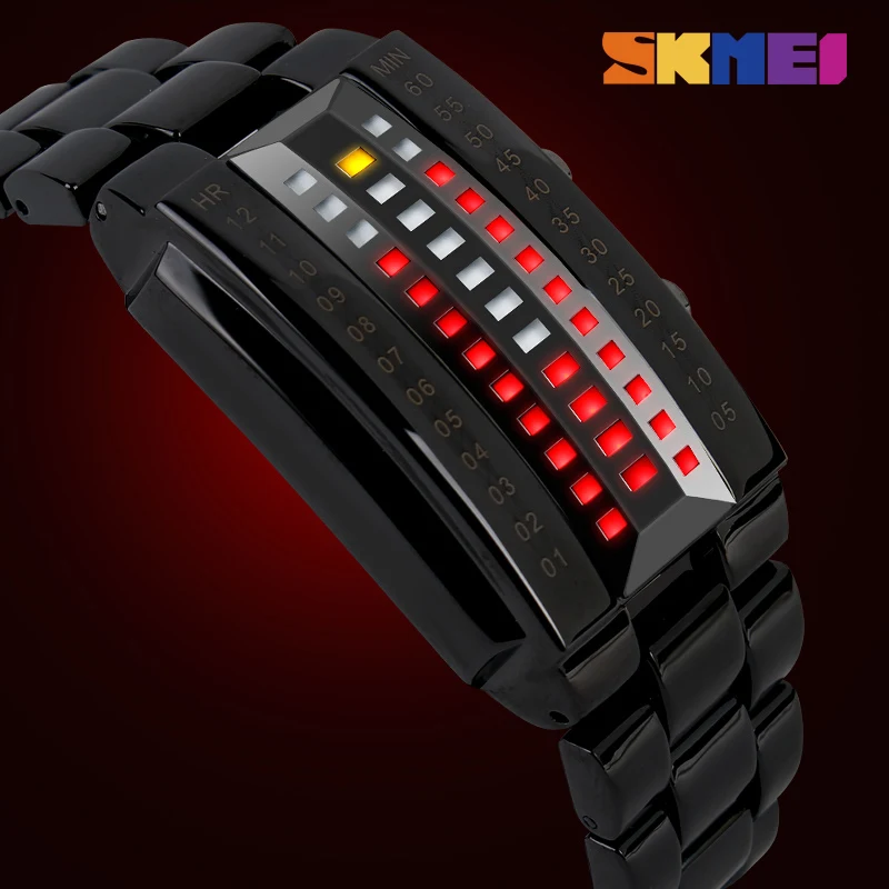 Часы наручные SKMEI Мужские Цифровые, роскошные брендовые креативные водонепроницаемые с ремешком из нержавеющей стали, 5 бар, 1035