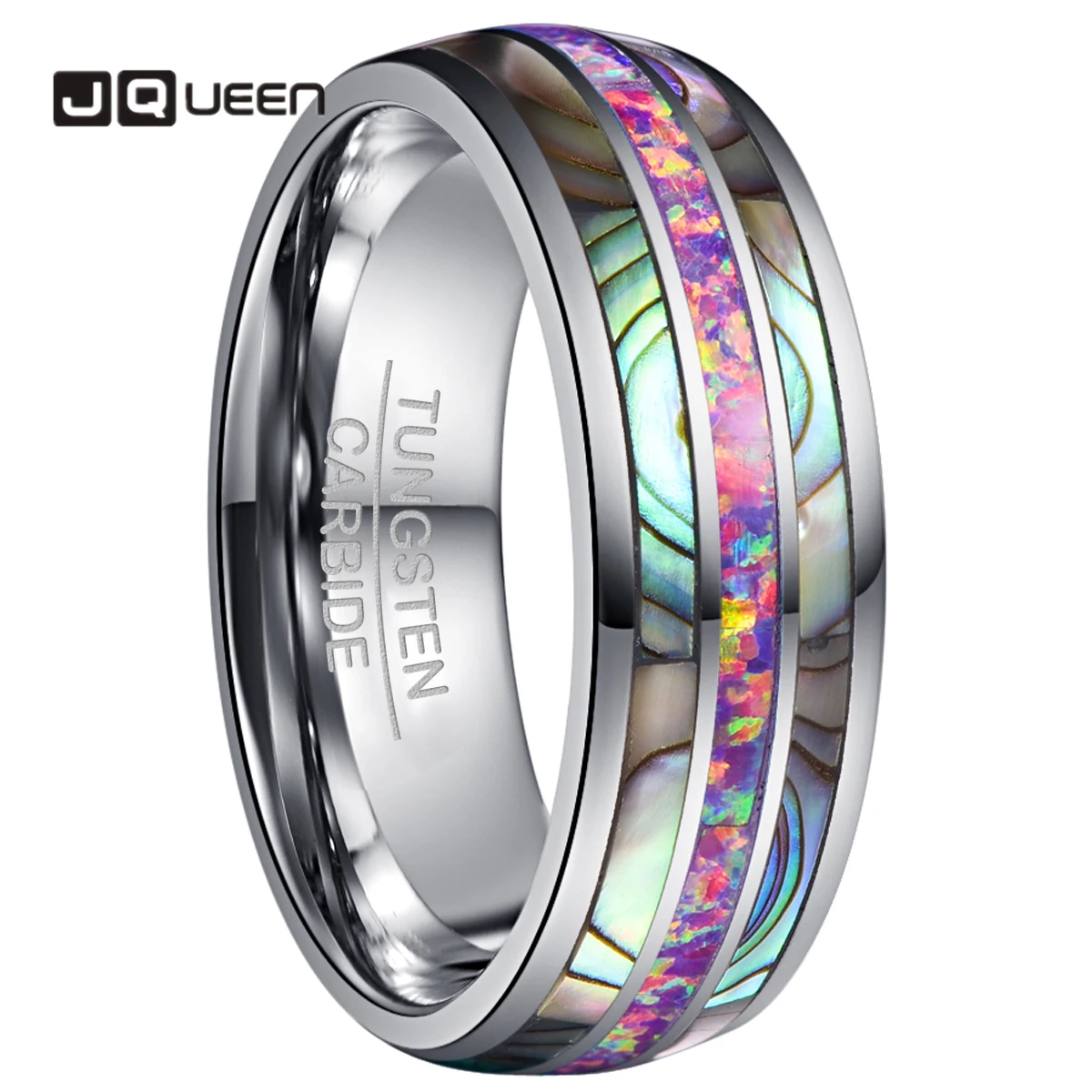JQUEEN 8 мм вольфрамовое Карбидное кольцо купольное стальное инкрустированное двумя акации + фиолетового цвета Opel вольфрамовое стальное кольцо комфортное прилегание