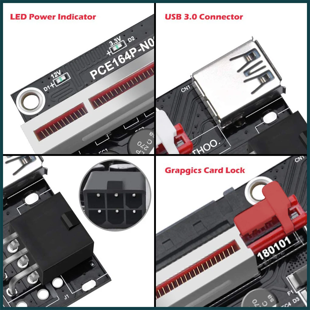 Переходная карта 008s009s Ver009S Plus 3 в 1 Molex 4Pin SATA 6PIN PCI-E PCI Express адаптер 1X 16X USB3.0 удлинитель