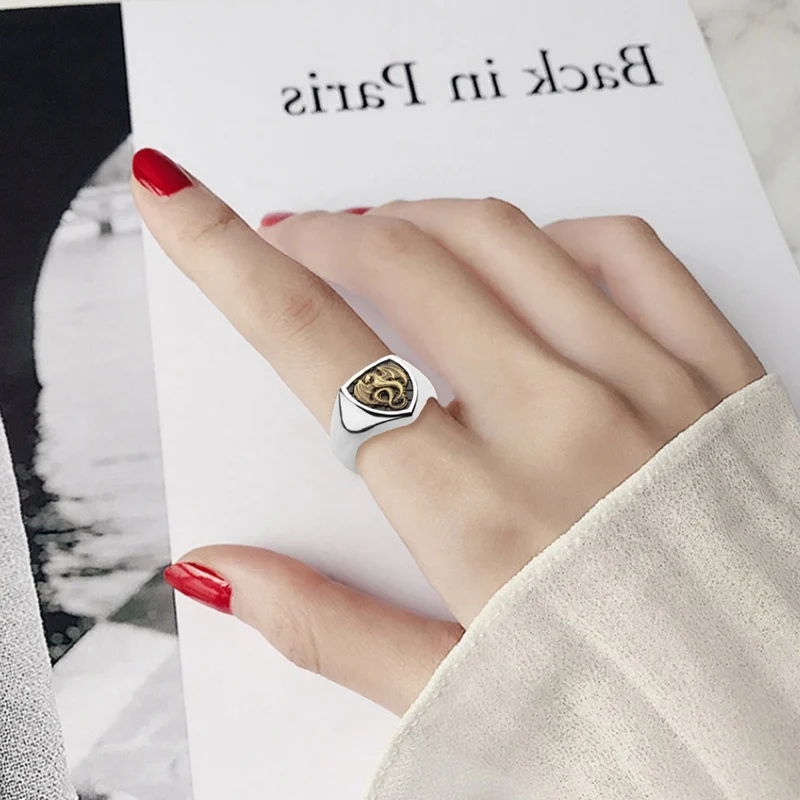 Кольцо в стиле хип-хоп с тайным отсеком льва, двухцветные кольца зо...