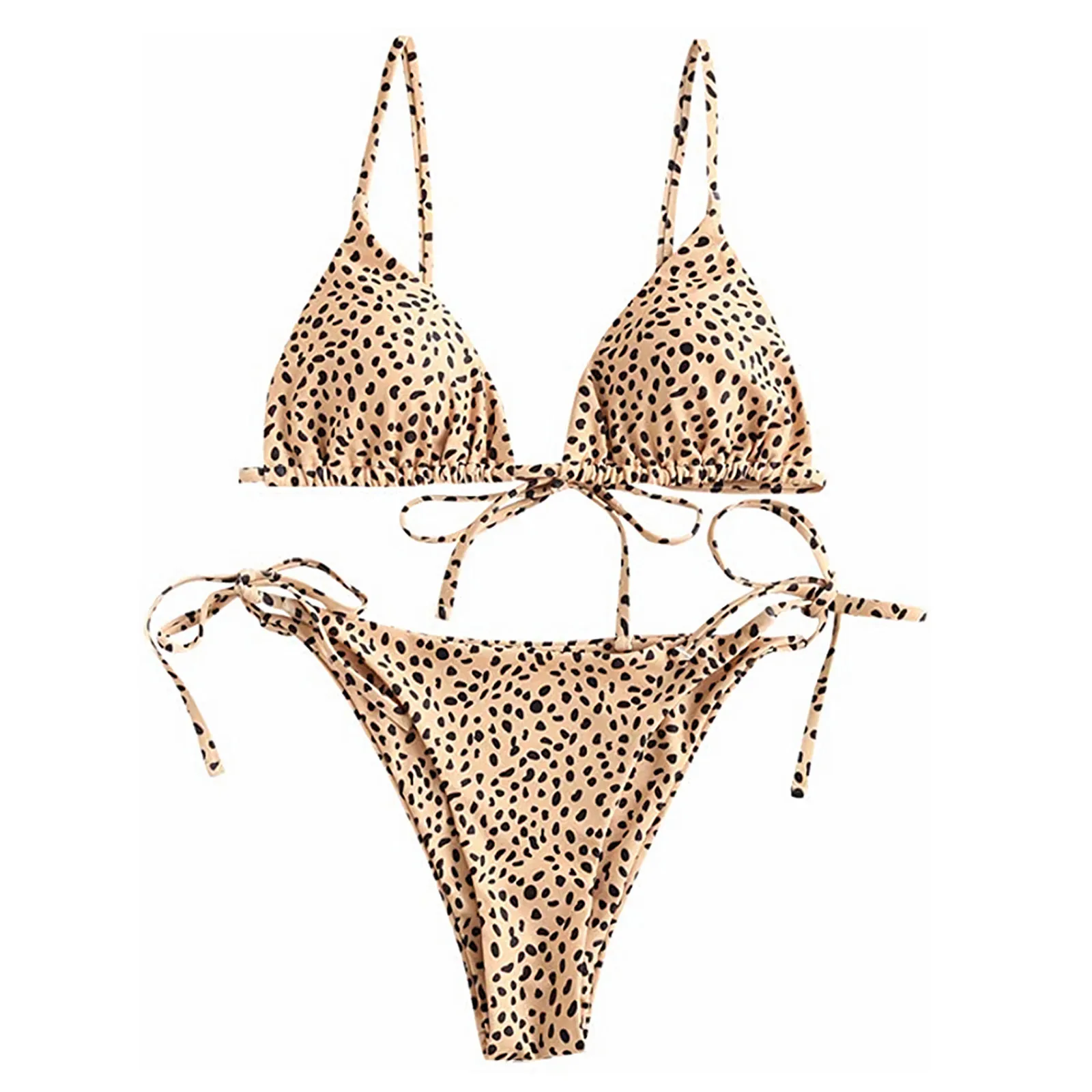 Женский сексуальный купальник-бикини в горошек на шнуровке с высоким вырезом