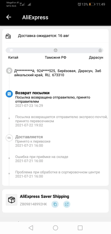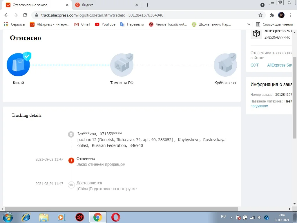Посылка не отправлена продавцом! На сообщения Продавец не отвечал! Алиэкспресс вернул деньги!