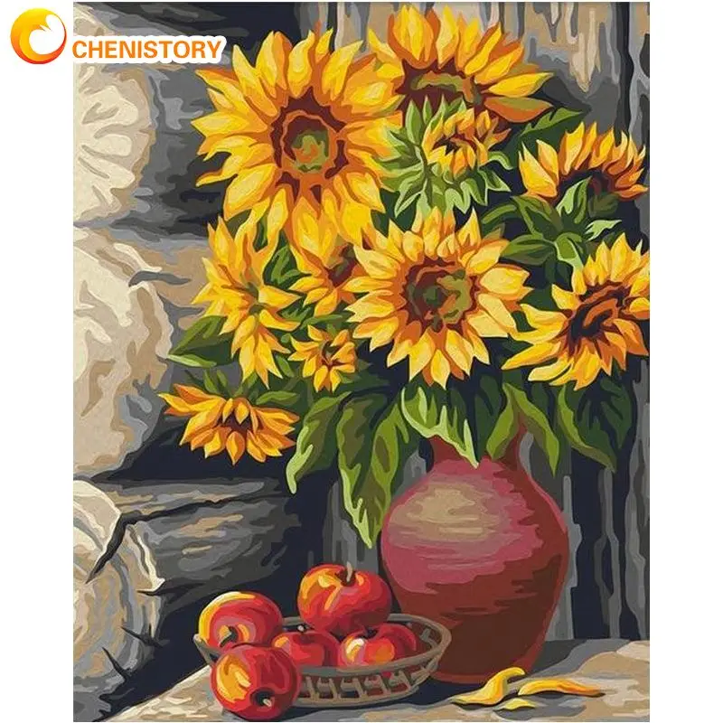 CHENISTORY Рамка DIY масляные Набор для рисования по номерам закат цветы набор картина по номерам современные стены Искусство Холст Живопись для дома