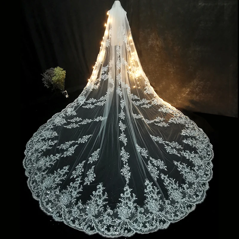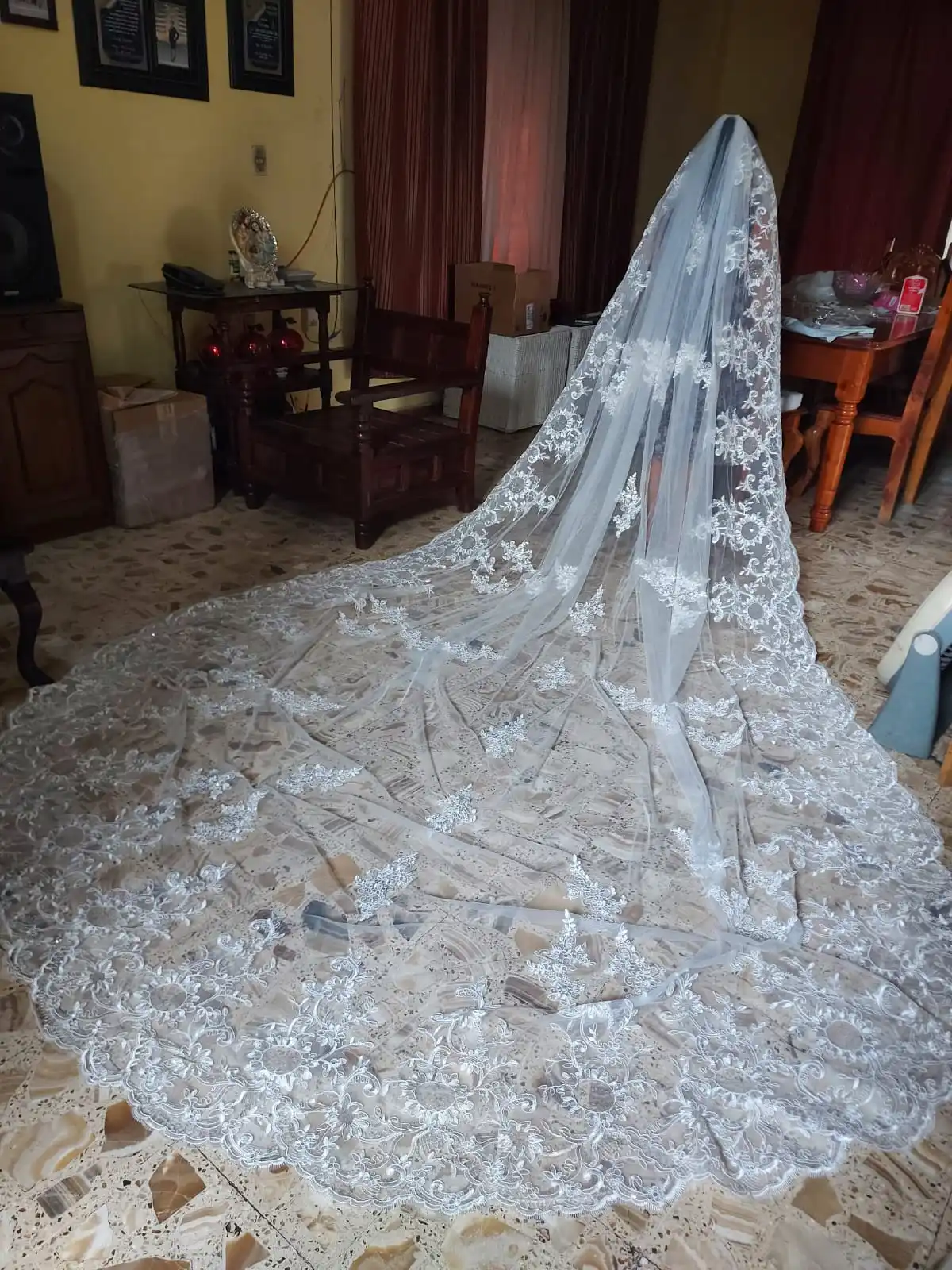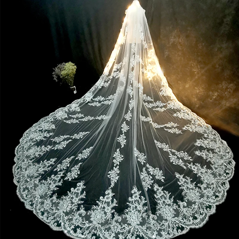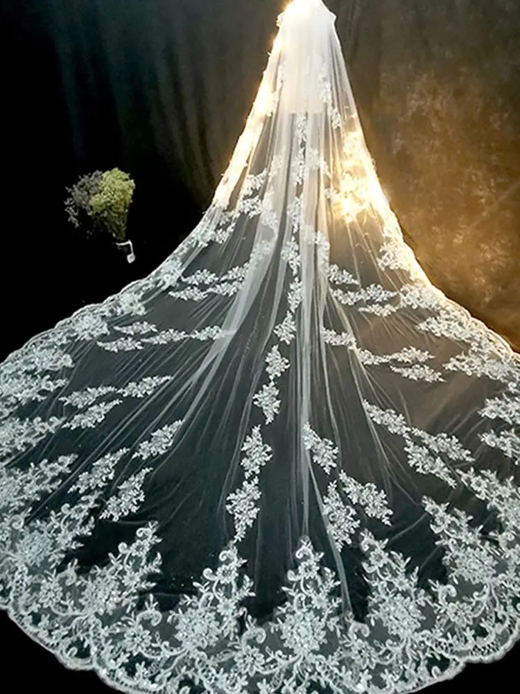 Фата свадебная Длинная с гребнем, элегантная с кружевной аппликацией, Белыйцвет слоновой кости, длиной 1 T