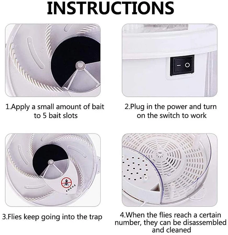 Описание товараОсобенности:1. Usb-кабель, безопасный и удобный.2. Можно использовать повторно, высокая стоимость.3. Физические ловушки, безопасные, экологически чистые.4. Высокая эффективность захвата.5. Вы можете попробовать мед или сахар, любая жидкость или мощность, которые могут заманить мух, будет подходить как приманка.6. Он будет работать очень медленно, иначе мухи будут пугать и улететь. Метод использования:1. Нанесите приманку на 5 канавок (Не используйте жесткие предметы в качестве приманки).2. Подключите питание и включите переключатель.3. Муха притягивается приманкой и переносится в коробку вращающейся пластиной.4. Снимите ящик для ловушки и очистите. Параметры:Название: электрическая ловушкаМатериал: пластикНапряжение: 5-10 В постоянного токаЧастота: 55/65 ГцРазмер продукта: 24*7,5 смТип: ловушка для мух, электрическая ловушка для мух, ловушка для мух, ловушка для насекомых, борьба с вредителями, продукты для борьбы с вредителямиПосылка включает в себя:1 х устройство ловушки1 х USB кабель без вилки Советы: Этот продукт подходит для отелей, ресторанов, столовых, семей, пищевых кортов, супермаркетов, пристаней, ферм, пищевых фабрик, фармацевтических фабрик и т. д. Если эффект не очень хорош в использовании, это, как правило, вызвано неправильным использованием. Машина используется, чтобы заманить муху, чтобы оставаться на поверхности доски, а затем мухи переносятся в летучую коробку через трансферную плату.Необходимо обратить внимание на использование точек:1. Необходимо добавить пять канавок с нужным количеством приманки.2. Машина должна быть размещена там, где активна муха.3. Если муха не интересует приманка, вы можете добавить уксус или сахар или рыбий запах, чтобы привлечь мух.4. Скорость определяется нашими тестами бесчисленных раз. Если скорость слишком быстрая, это приведет к тому, что мухи улетят.