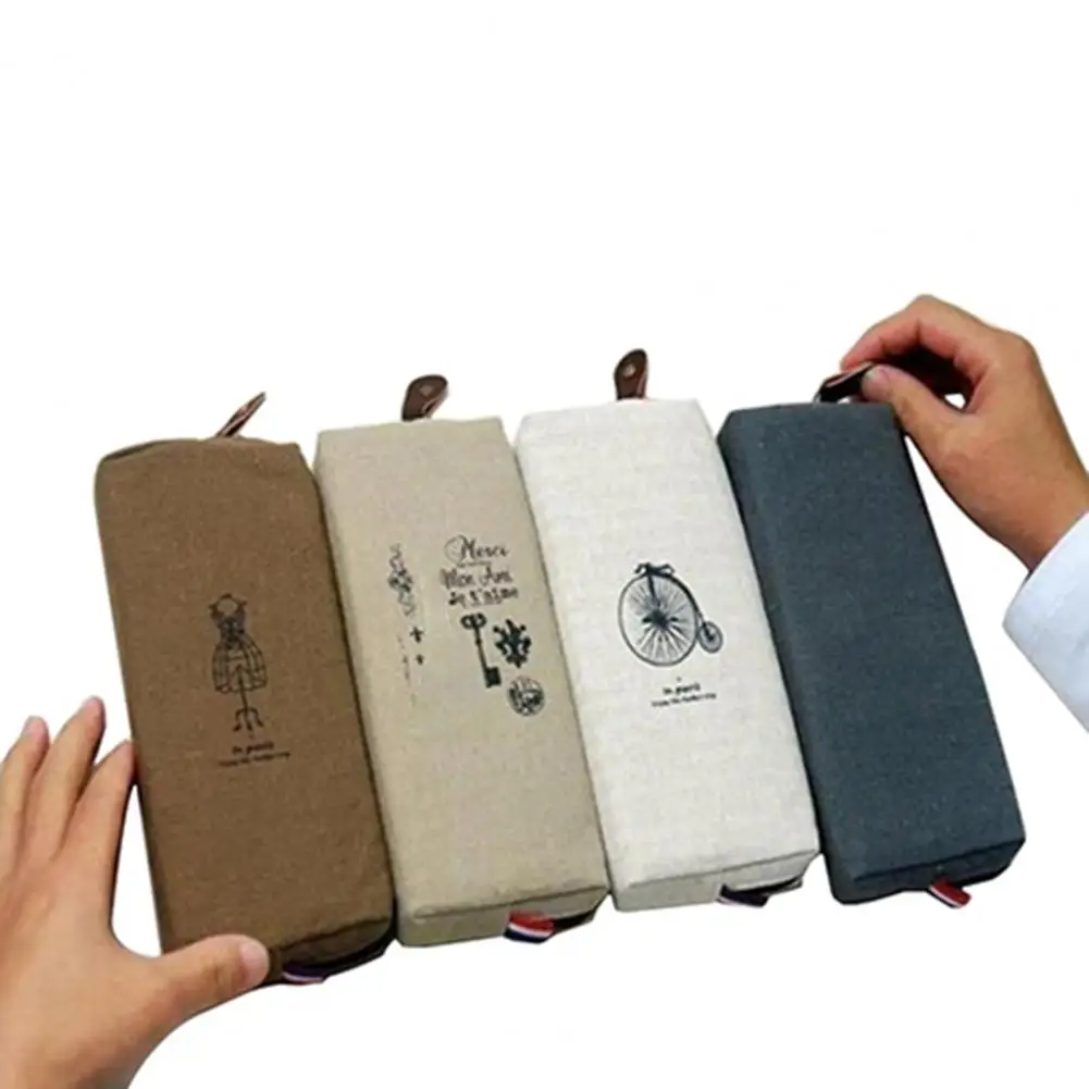 Чехол холщовый для карандашей и ручек, в стиле ретро, чехол для макияжа, для мелочи, на молнии