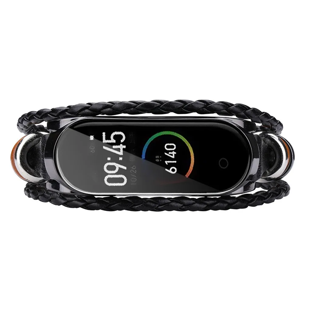 Модный кожаный браслет с бусинами, Плетеный ремешок для часов Xiaomi Mi Band 4
