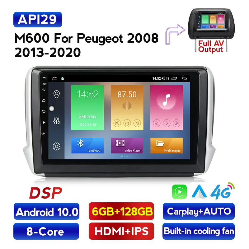 MEKEDE 6 ГБ ОЗУ 128 Гб ПЗУ Android 10 для Peugeot 2008 208 серии 2012-2018 мультимедийный стерео автомобильный DVD-плеер навигация GPS радио