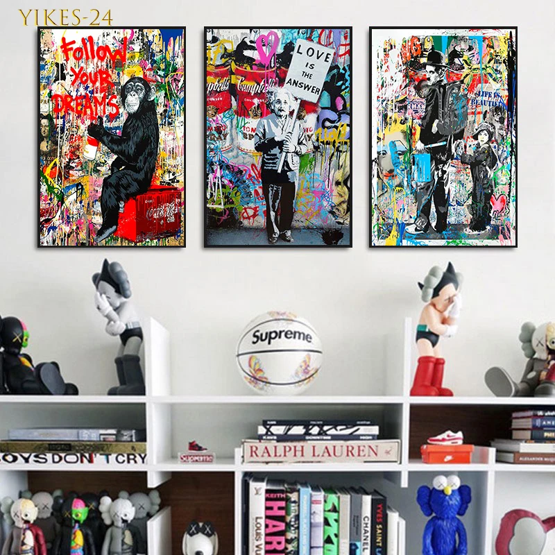 Уличный стиль с ручной росписью в виде граффити для постеры с масляной живописью и принты красивые фрески кабинет Гостиная украшение холст для живописи