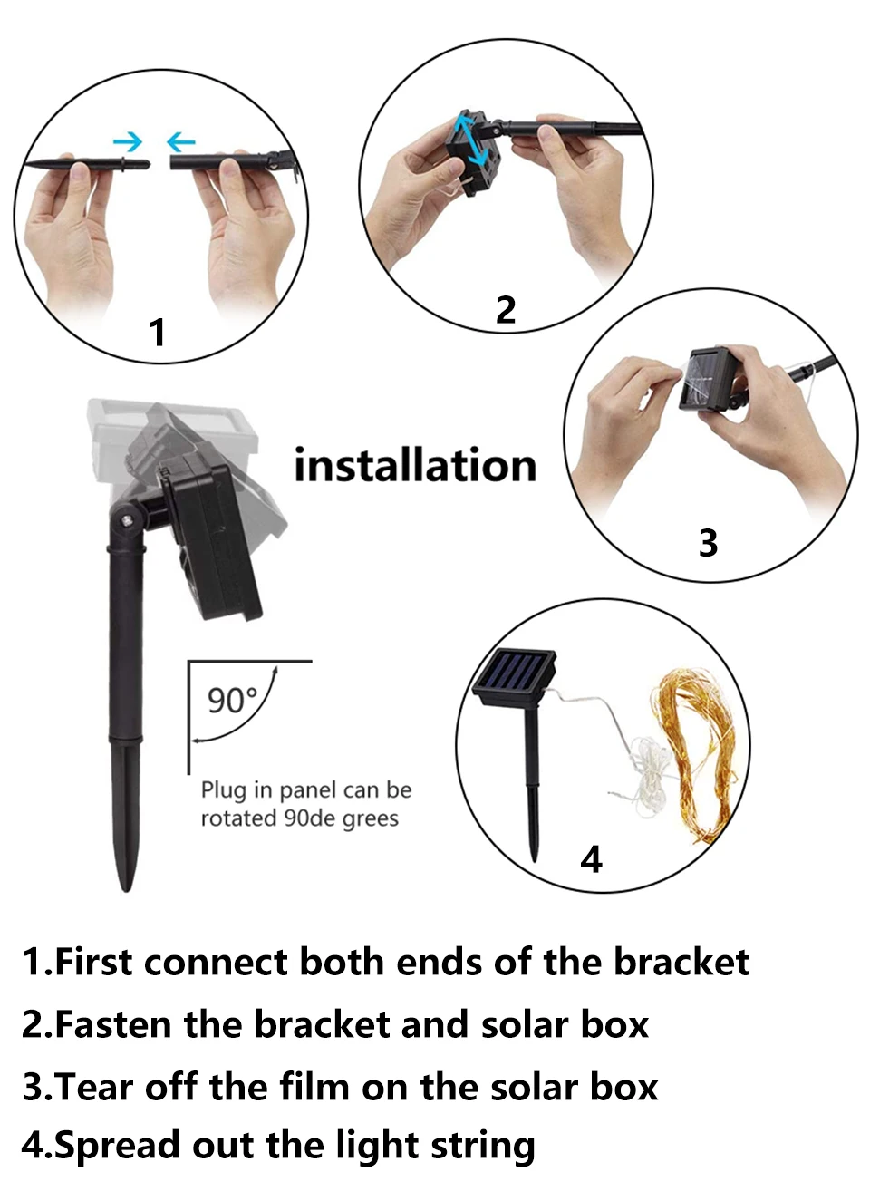 Длина ведущего провода высокого качества солнечного света на открытом воздухе. Идеально подходит для украшения вашего сада, патио, двора, свадьбы, вечерние, ресторана, рождественской елки и т. д. 8 режимов освещения --- великолепные Режимы освещения, включая комбинацию, светящиеся мухи мигают, волны, выцветание, погоня/мигание, медленно выцветание, мерцание/мигание и постоянное включение. Легко установить --- эти солнечные сказочные огни тонкие и гибкие. Таким образом, вы можете легко создавать нужные формы, их также легко хранить. СВЕТОДИОДНЫЕ гирлянды прекрасно подходят для наружных рождественских украшений. Эффективное поглощение и Конвертация --- светодиодный Рождественский свет, разработанный с солнечной панелью и перезаряжаемой батареей, Солнечная гирлянда может работать около 8 часов ночью, если панель поглощает достаточно солнечного света в течение дня. Характеристики: Цвет: теплый белый/холодный белый/Разноцветный Источник питания: солнечные струны Панели солнечные: 0,6 W Батарея: 800 мА (11 м/21 м) 1 шт. AA Аккумуляторная батарея, 1400MA(31 м) 1PCSAArechargeable батарея, 800мА (41 м) 2PCSAArechargeable батареи, 1400MA(51 м) 2PCSAArechargeable батареи Время работы: более 8 часов при полной зарядке Примечание: После получения этого продукта, пожалуйста, включите переключатель и работайте в ночное время. Посылка 1 * светодиодная гирлянда 1 × солнечная панель 1 × кол Руководство: 1. После получения продукта, пожалуйста, проверьте, является ли медная проволока и соединительная проволока твердой 2. Включите переключатель (продукт работает, вы можете украсить свой сад). 3. Когда переключатель включен, если он не работает, пожалуйста, не волнуйтесь, потому что долгое время транспортировки, небольшая часть батареи измотана и должна быть заряжена на солнце. Обратите внимание: Включите переключатель, чтобы зарядить блок солнечной батареи