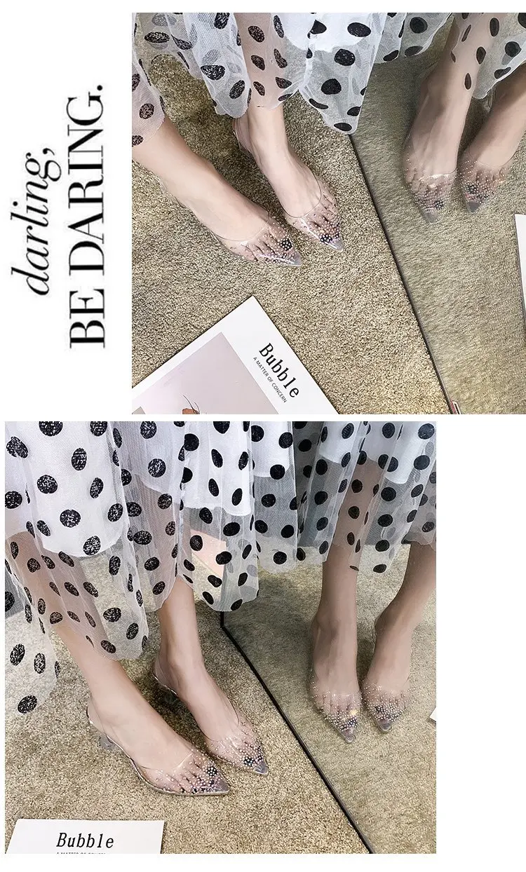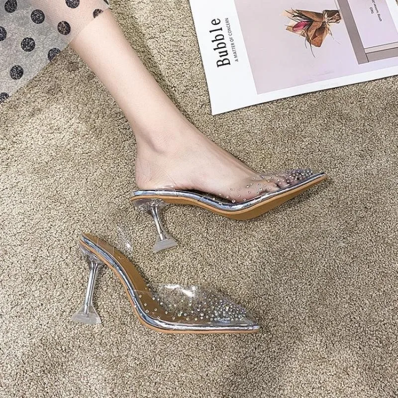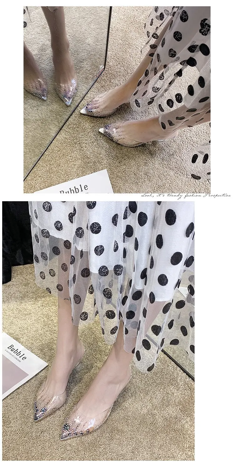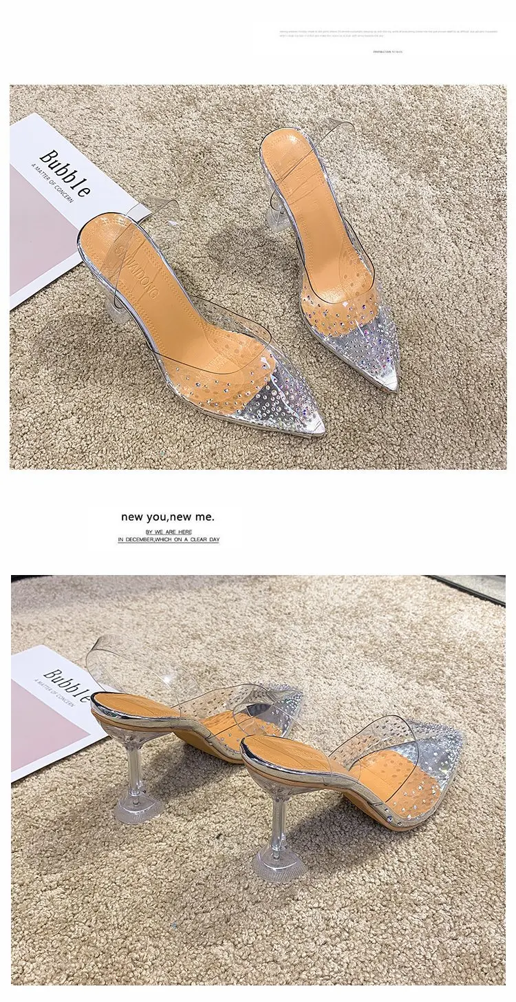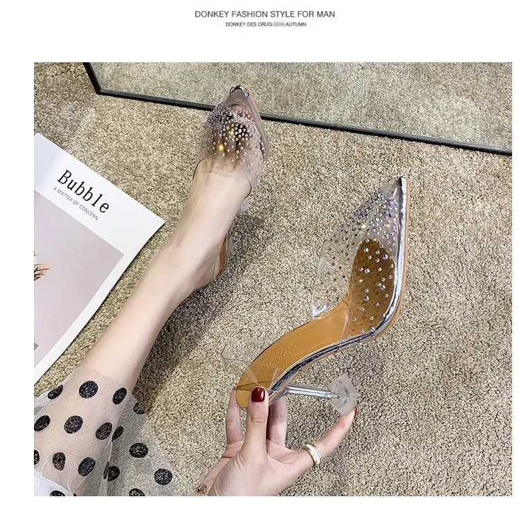 Босоножки женские прозрачные, на высоком каблуке, с кристаллами