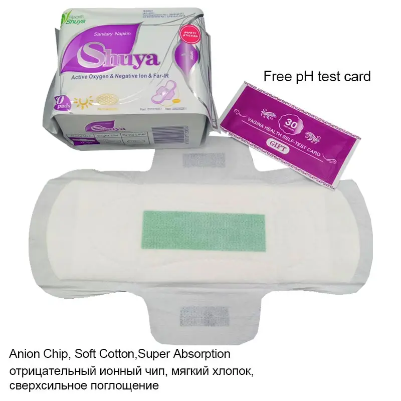 Анион, как считается, является естественным предельным действием против окружающей среды и биологических загрязняющих веществ. Ника зовут витаминами воздуха. Когда содержание отрицательных ионов в воздухе до 5000 см3, это может повысить устойчивость и антибактериальную способность, снять напряжение, уменьшить раздражение, удалить неприятные запахи, устранить эффект усталости, улучшает эндокрин и улучшает обмен веществ, поэтому каждая женщина может наслаждаться здоровым, Гигиеничность и комфортные ощущения. Зеленая анионная полоска SHUYA, которую можно увидеть в этой гигиенической Салфетке, содержит 6100 анионов каждого кубического см.