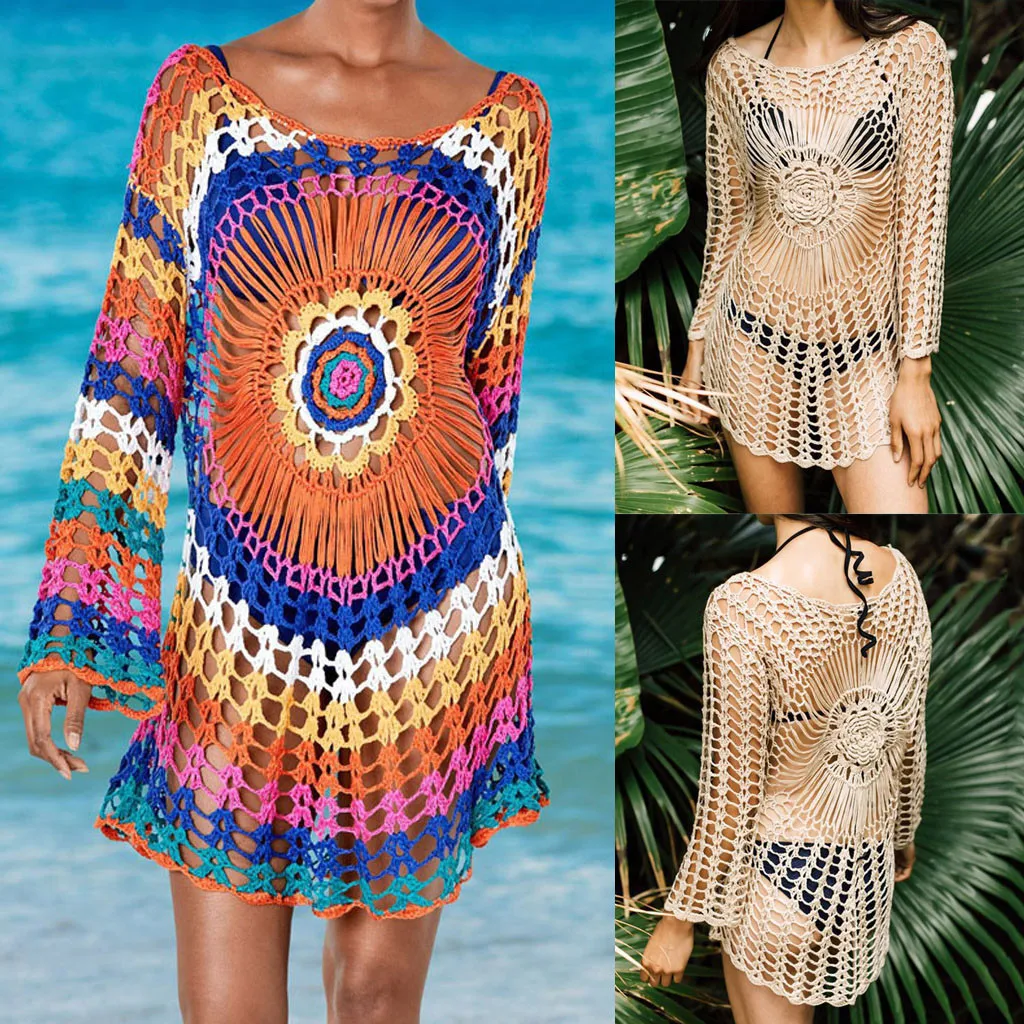 Радужная вязаная Солнцезащитная юбка, платье, вязаное крючком бикин...