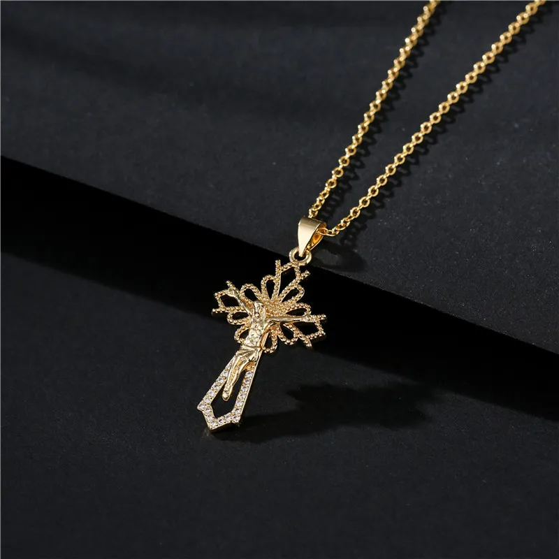 Ожерелье с подвеской в виде Креста Иисуса для мужчин и женщин, классическое кубическое христианское ювелирное изделие золотого цвета с фианитами, 2021