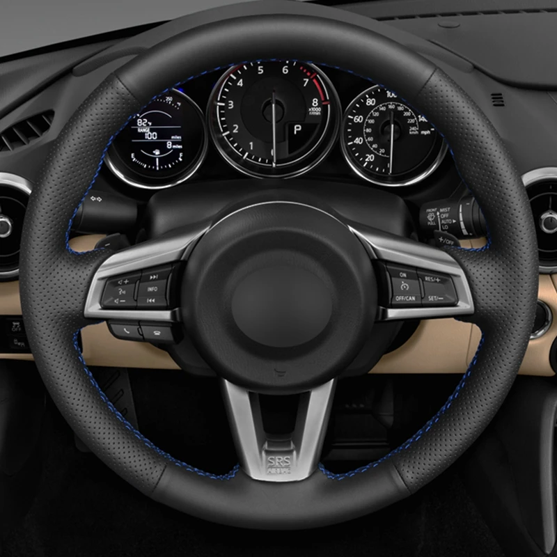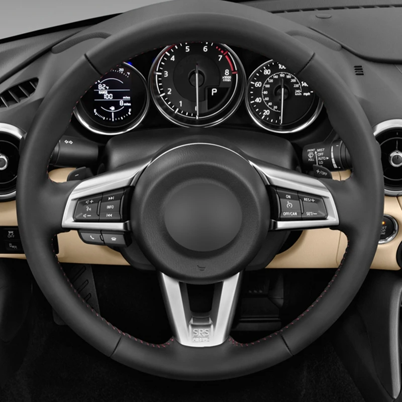Мягкая черная натуральная кожа, сшитая вручную, для Mazda MX5 чехол рулевого колеса автомобиля MX-5 2016 2017 2018 2019 2020