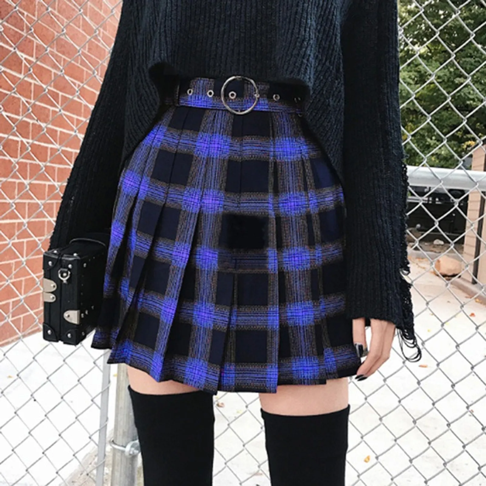 Женская плиссированная юбка-пачка, короткая готическая юбка в клетк...