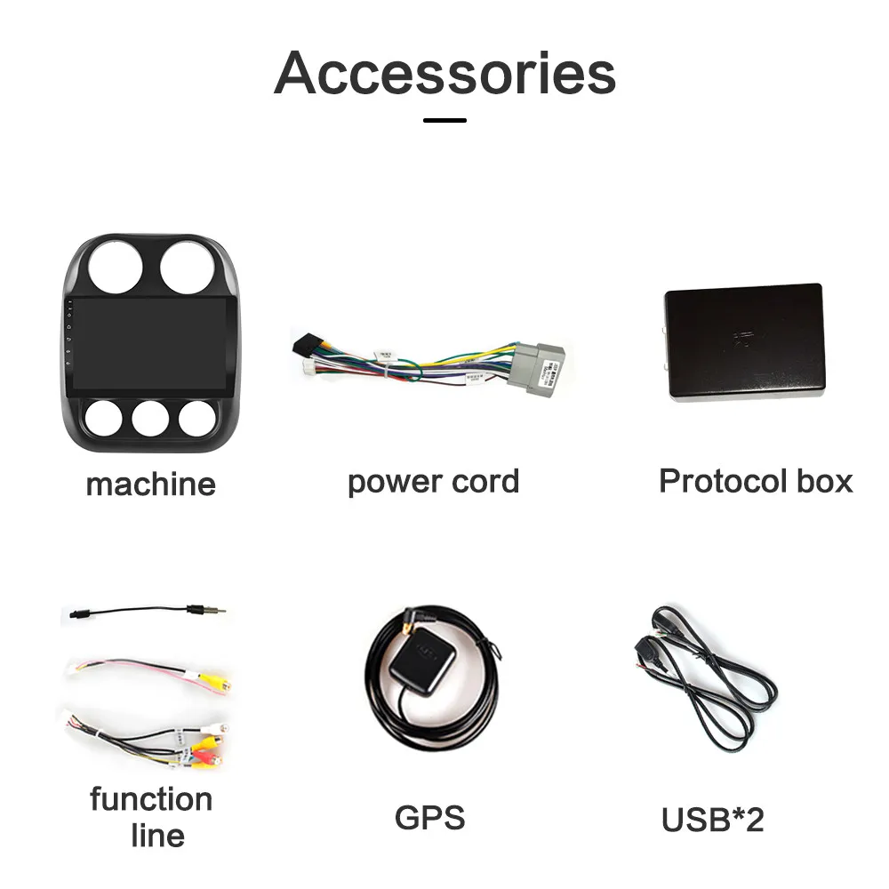 Для JEEP Compass Patriot 2010 2011 2012 2013 2014 2015 2016 1, 4-ядерная конфигурация включает (RAM + ROM): 1G + 16G / 2G + 16G / 2G + 32G / 4G-SIM-3560-2G + 32G [опционально]; 2, 8-ядерная конфигурация включает (RAM + ROM): 7260L-2G + 32G / 7260L-4G + 64G / 4G-SIM-5760-2G + 32G / 4G-SIM-5760-4G + 64G / 4G-SIM-TS10-4G + 64G / 4G-SIM-TS10-6G + 128G [опционально]; 3, 4-ядерный содержит: версию: Android 8,1; Четырехъядерный процессор MTK8227 / Cortex-A7 Поддержка логотипа автомобиля 5; Заводской пароль: 8888 Разрешение: HD 2.5D,1024*600; Не поддерживает функцию AM, RDS; Обыпосылка пакет версии Wi-Fi поддерживает функцию вывода видео; Версия 3560-4G-SIM-WiFi: версия: Android 6,0; Поддерживает DSP; Не поддерживает функцию вывода видео; 4, 8-ядерный содержит: версию: Android 9,0 или Android 10; Восемь ядер: CPU Quad core и GPU Quad core соответственно; Поддержка логотипа автомобиля 5; Пароль завода: 8888; Разрешение: HD 2.5D,1024*600; Версия 7260L-WIFI: поддерживает функции DSP; Не поддерживает выход видео; Версия 4G-SIM-5760-WIFI и 4G-SIM-TS10-WIFI: поддерживает функции DSP, Carplay, разделения экрана; Не поддерживает видеовыход; 5. Операционная система Android может установить приложение Google Play store Skype Facebook youTube Twitter и т. д.; 6. Поддержка: радиостанции, звонков по Bluetooth, музыки по Bluetooth, управления рулевым колесом, встроенного Wi-Fi, MP3, видео-музыки (MPG, AVI), навигации, видеовыхода, зеркальной связи, USB 4G LTE Wi-Fi ключ и другие функции; Поддержка OBD (опционально) Поддержка DAB + (опционально)
