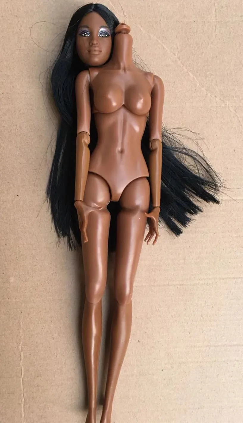 Тело великолепное! Его рельефы, красивые ключицы, кисти, аккуратные стопы - полный восторг! Оно тяжелое, приятно лежит в руках. В фотографиях сделала сравнение с телом Барби мтм. Как видно по фото, тело MengF заметно выше, с бОльшей грудью и бОльшей попой. Оно женственное, красивое, а мтм тело более кукольное. Заказывала тело вместе с головкой, на фото у продавца у головки пробор в центре и нет челки. Реально прислали голову с челкой и без пробора, но мне она даже больше нравится! Девушке подходит некоторая обувь от Барби, стопа больше, чем у мтм, скорее ближе к пышке и с высоким подъемом, шарниров в стопах нет. Из минусов, ноги в коленях крутятся очень легко, хотя шарниры в коленях достаточно тугие. На фото виден некоторый разнотон конечностей с телом, реально же глаз его не улавливает. Шикарная кукла получилась, рекомендую к покупке!