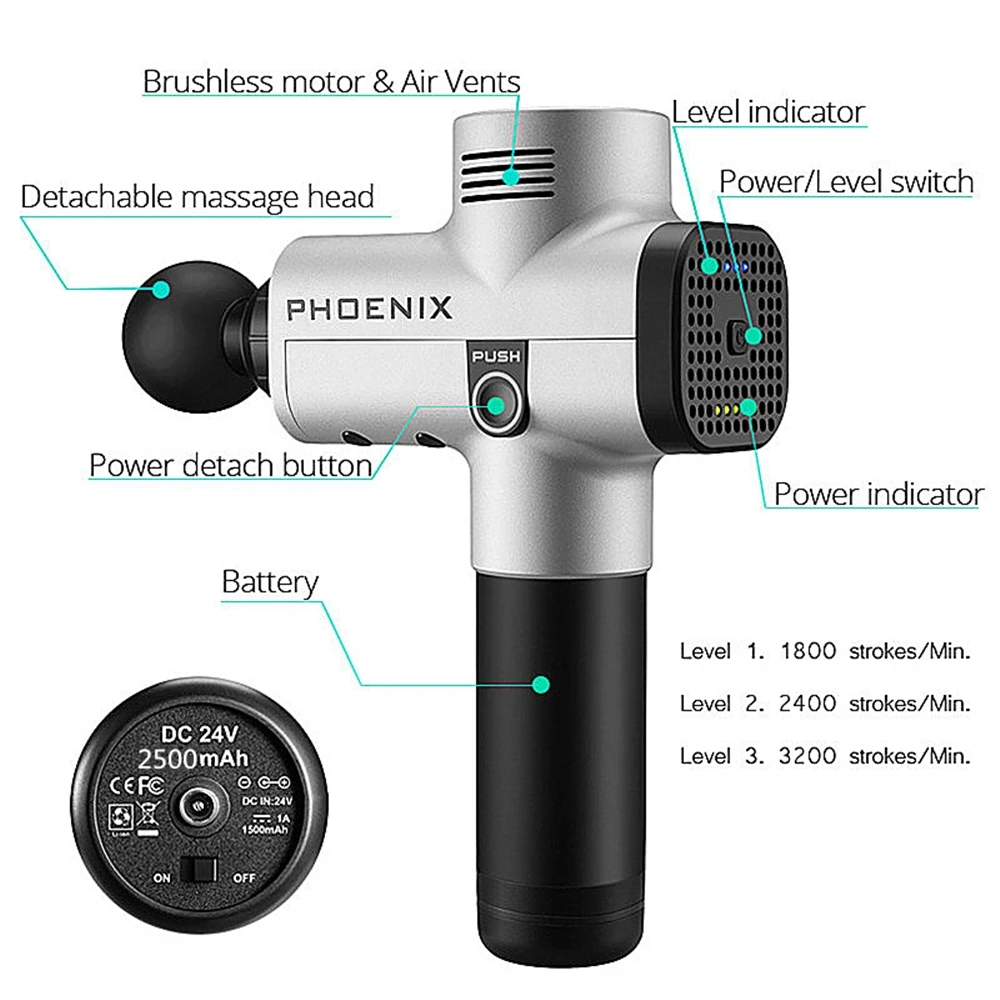 Массажный пистолет Phoenix A2 с портативной сумкой, массажер для тела, рук, спины, глубоких мышц, вибратор, пистолет для придания формы телу и облегчения формовки