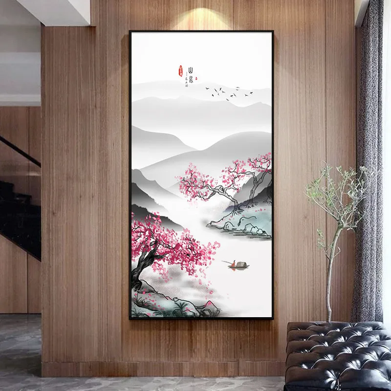 Китайский стиль пейзаж горы реки птицы современный скандинавский ст...