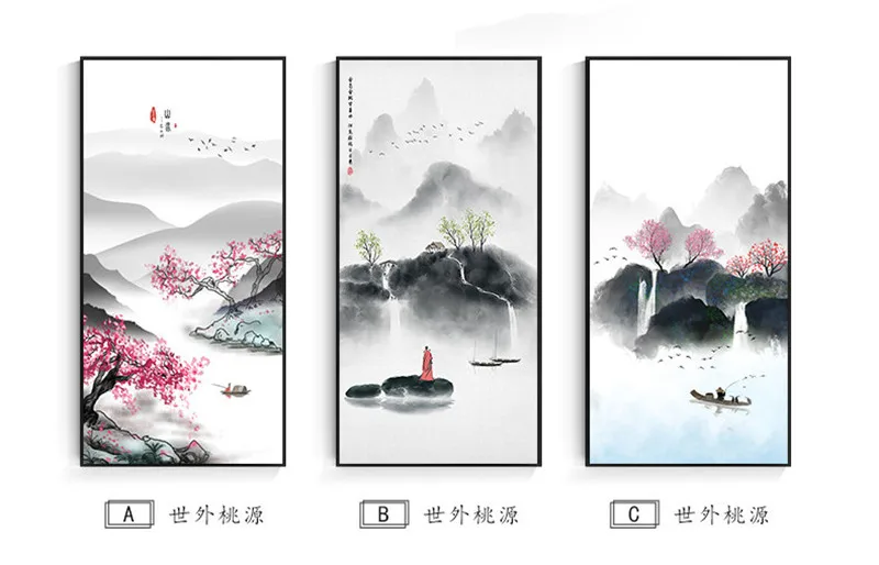 Традиционный китайский Горный пейзаж стены искусства картины печати...