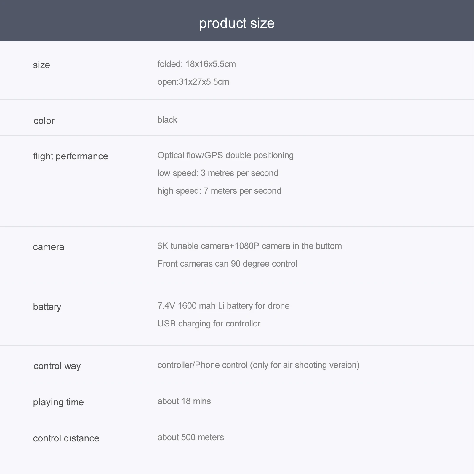 Название бренда: LSRCНомер товара: LS25Частота: 5GКанал: 4CHG-yro: 6 осейЛетающий Вес: 167 г (с батареей)Двигатель: 8620Аккумулятор квадрокоптера: 7,4 В 1600 мАч LipoПередатчик Батарея: 150 мА/ч, 3,7 VВремя полета: 18 минутВремя зарядки: 120 минутРасстояние R/C: 500 мЦвет: черныйКамера дополнительно: 5G WiFi 4K HDFOV: широкий угол 120 °Пиксель: 6K -- изображение: 6144X3456P6K -- видео: 1920*1080P4K -- изображение: 4096X3072P4K -- видео: 1920*1080PРасстояние Wi-Fi: 500Четырехъядерным процессором, Размеры: 31*27*5,5 см (в разложенном виде), с реквизит ограждение насоса)18*16*5,5 см (руки сложены)Особенности:-С складной ручкой, маленький размер, легко носить с собой.-Режим позиционирования GPS обеспечивает более точный полет.-С 5G функцией Wi-Fi можно подключать приложение, систему APK для съемки/видео, передачу в режиме реального времени через Изображение камеры телефона-5G Wi-Fi fpv расстояние до 500 м.-Wi-Fi 6K HD камера обеспечивает широкий диапазон фотографий и видео.-Следуйте за мной: самолет будет фиксировать контрольный мобильный телефон и следовать оператору в любом направлении он движется.-С функцией удержания высоты обеспечивает стабильный полет.-Объемное действие позволит самолетам лететь по кругу, обеспечивая более прохладную перспективу съемки.-Режим полета Waypoint, просто нарисуйте маршрут на экране, вертолет в качестве пути.-С 7,4 V 1600mAh литий-ионная аккумуляторная батарея, время полета до 18 минут.-С безголовым режимом, не нужно регулировать положение самолета перед полетом.-Функция возврата с одним ключом позволяет легко найти дорогу домой.-Взлет/посадка одной кнопкой. Одно нажатие автоматически снимает или садится, Дрон будет снимать или возвращаться в положение, где он взлетел.-Защита от перегрузки по току при низкой мощности.-Технология 5 ГГц для защиты от помех.-4 канала, который может сделать Ascend, спуск, вперед, назад, левая бока, правая бока.6-axis g-yro, который может иметь более стабильный полет и быть простым в управлении.-Он имеет 2 уровня скорости полета для переключения, которая может сделать больше удовольствия с летящим.-Фюзеляж квадрокоптера изготовлен из высокопрочного и стойкого инженерного пластика, легкого и прочного сопротивления.Функция: вверх/вниз, вперед/назад, поворот влево/вправо, поворот влево/вправо, бока, f светильник, 3 уровня f светильник скорость, светодиодный светильник, GPS позиционирования, Follow Me (следуй за мной), окружающие F светильник, светильник Waypoint F, режим удержания высоты, Безголовый режим, возврат одной кнопкой, взлет одной кнопкой/посадка, WiFi FPV, камера/видеоПосылка включает в себя:1 x Квадрокоптер LS25 RC1 пульт дистанционного управления1x7,4 V 1600mAh Lipo батарея (можно выбрать количество батареи при размещении заказа)1 х USB кабель для зарядки4 x защитный чехол2 запасных лезвия1 отвертка1 x Руководство пользователя