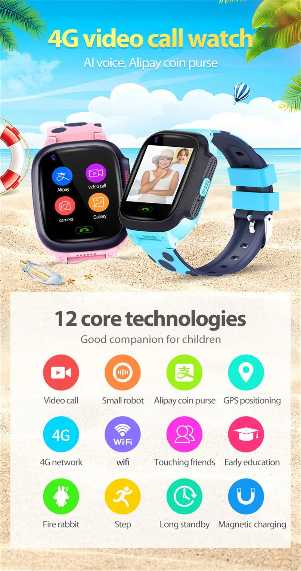 Детские Смарт-часы Y95 GPS, влагозащита телефона, 4G, Wi-Fi, функция отслеживания передвижений по SIM-карте, Смарт-часы, HD видеозвонки