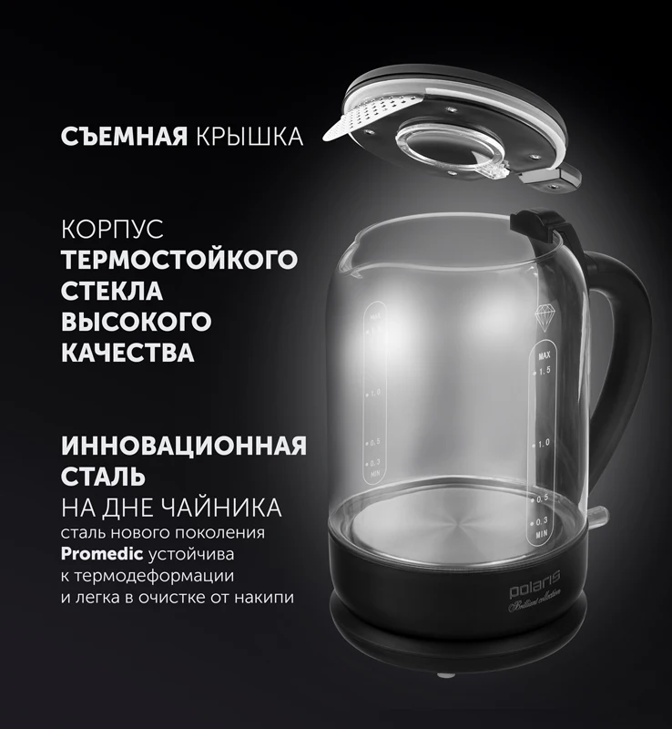 Номер моделиЧайник Polaris PWK 1753CGL Brilliant Collection