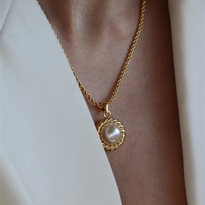Женское винтажное ожерелье из нержавеющей стали, винтажное ожерелье с кулоном из пресноводного жемчуга и витой веревкой, покрытое золотом, 2021