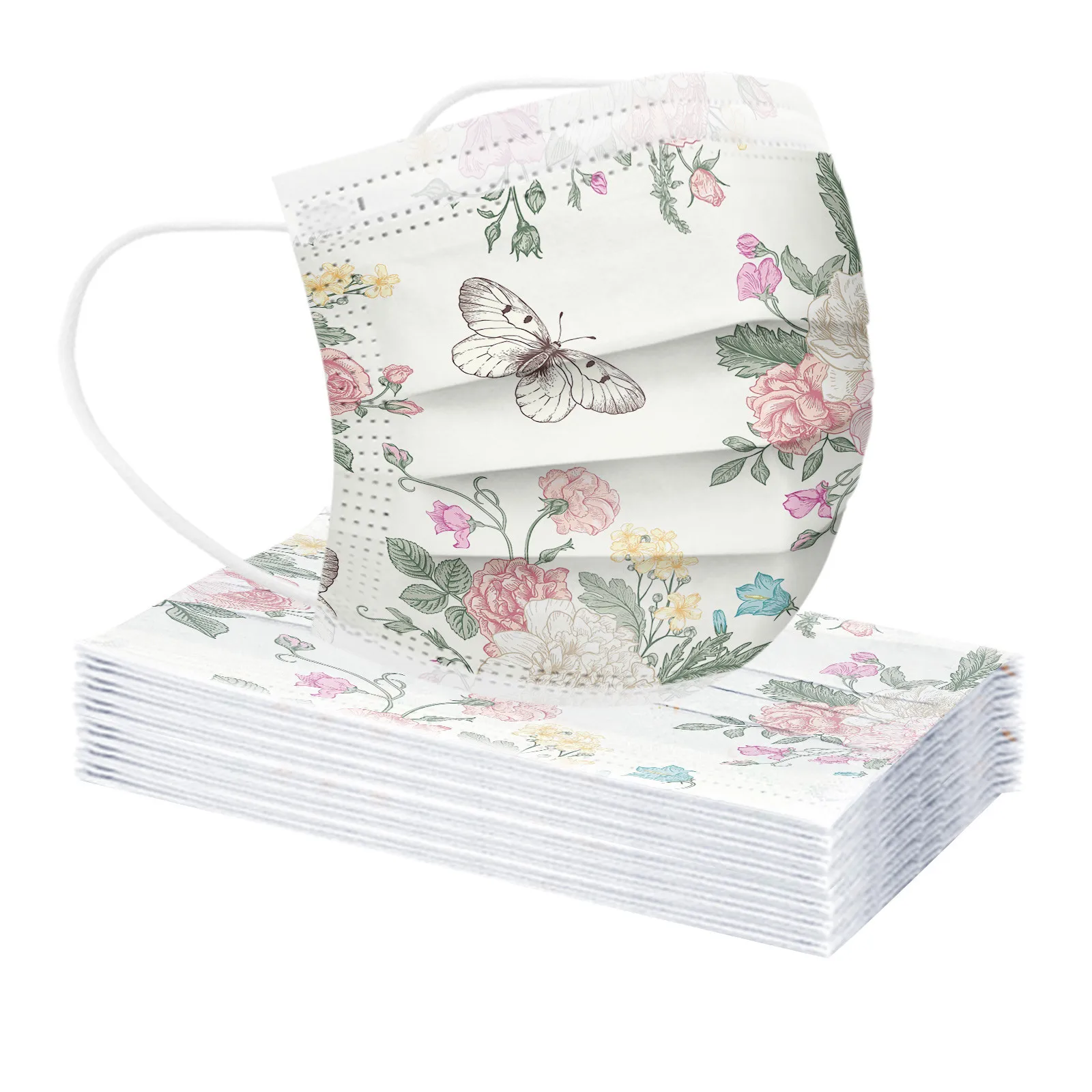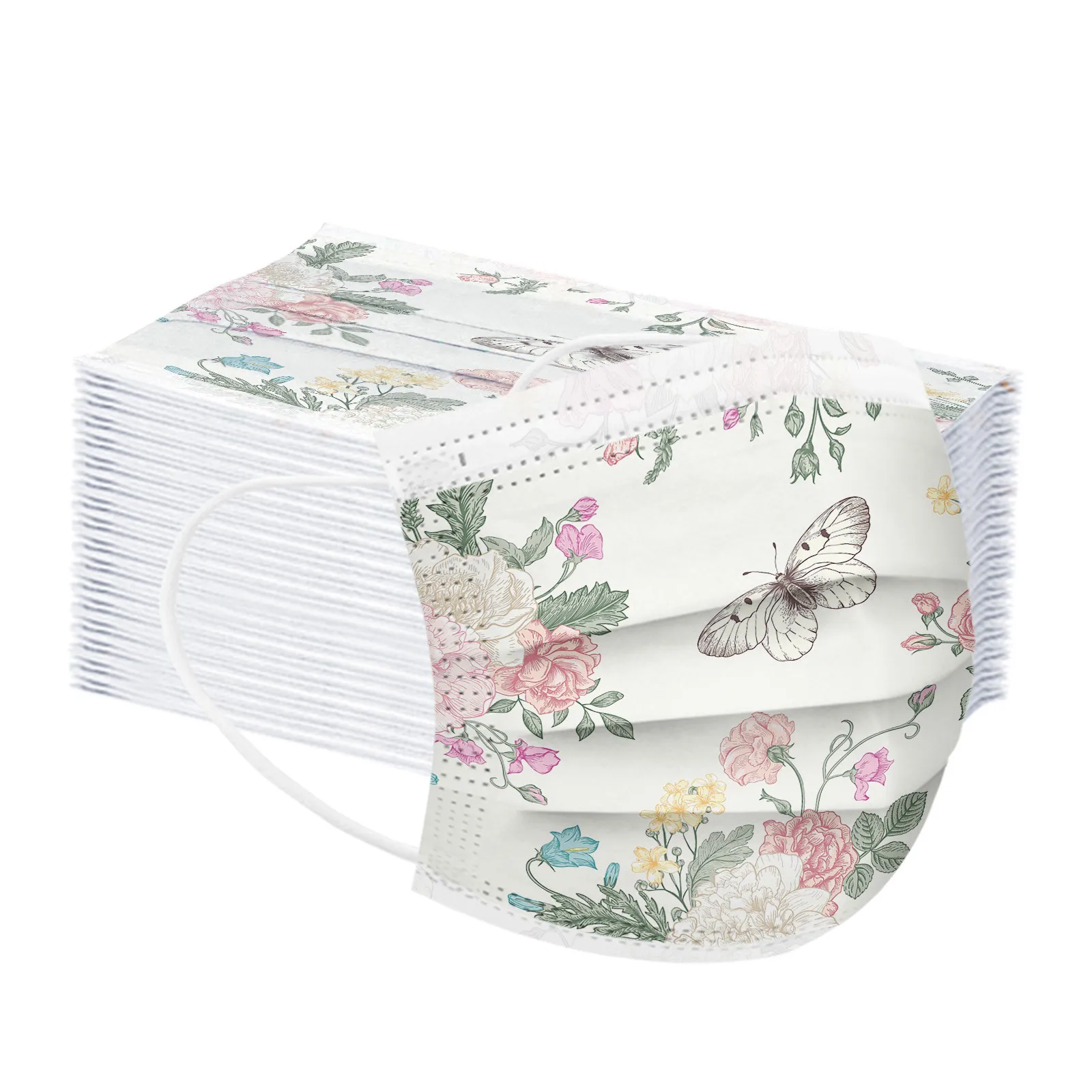 Дышащая одноразовая трехслойная маска с принтом бабочки для взрослых
