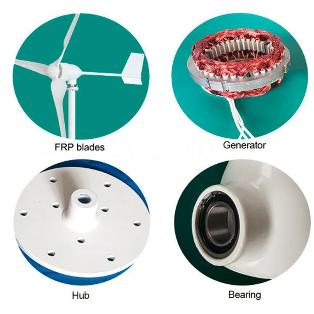 1. Низкая скорость запуска, высокое использование энергии ветра 2. Простая установка, дополнительное соединение труб или фланцев 3. Лезвия с использованием нового искусства точного литья под давлением, сочетаются с оптимизированной аэродинамической формой и структурой, которые увеличивают использование энергии ветра и годовую выработку. 4. Корпус из литого алюминиевого сплава с 2 поворотными подшипниками, что позволяет ему переживать сильный ветер и работать более безопасно 5. Запатентованный генератор переменного тока с постоянными магнитами со специальным статором, эффективно снижает крутящий момент, хорошо сочетается с ветровым колесом и генератором и обеспечивает производительность всей системы. 6. Контроллер, инвертор может быть подобран (опционально) в соответствии с конкретными потребностями клиентов