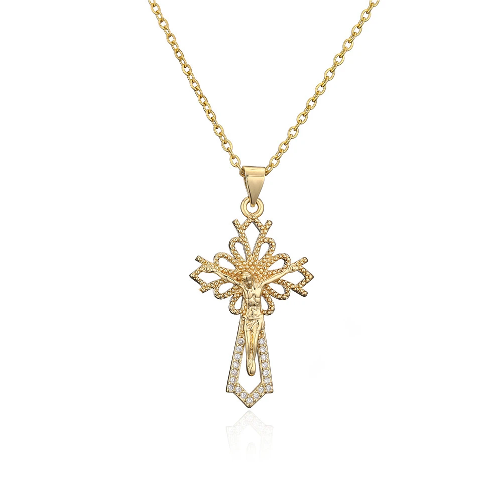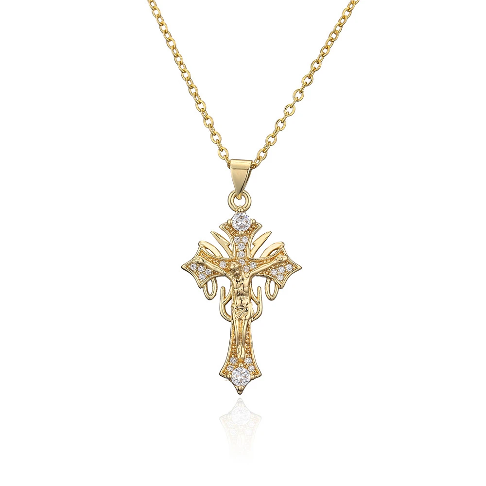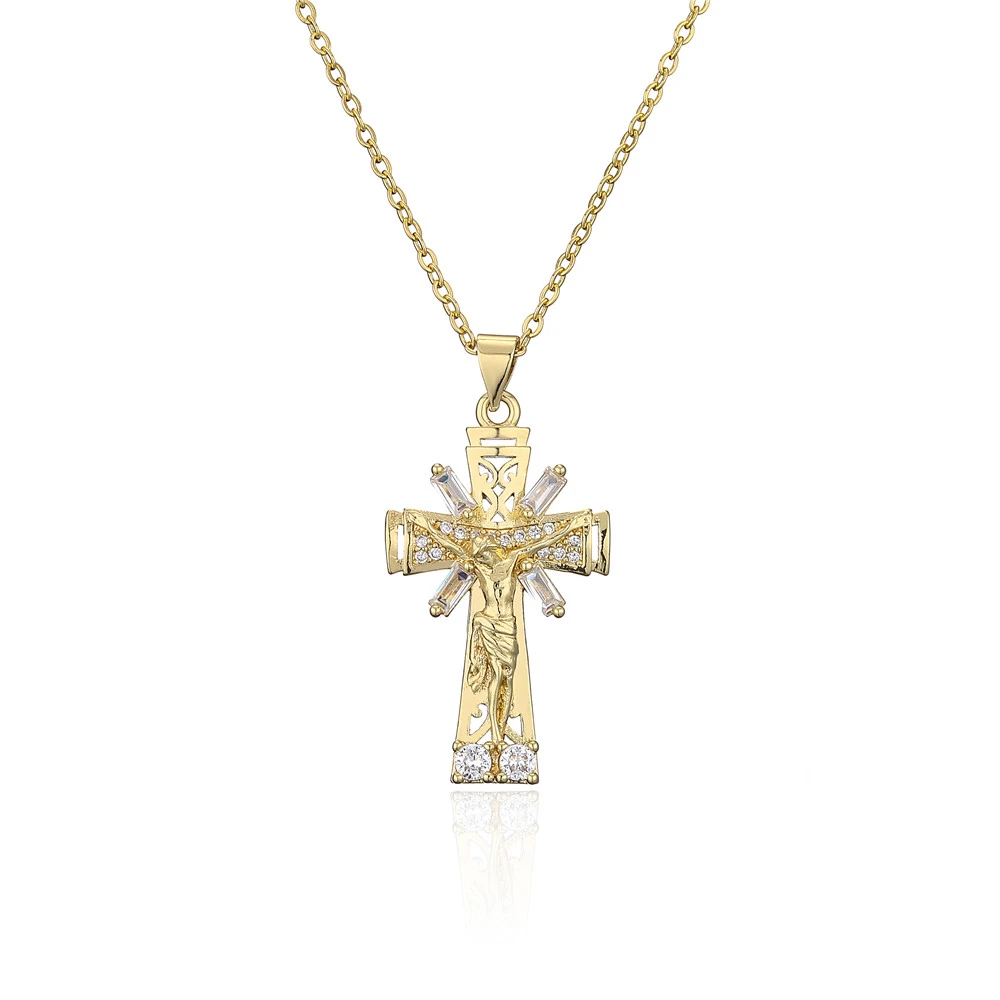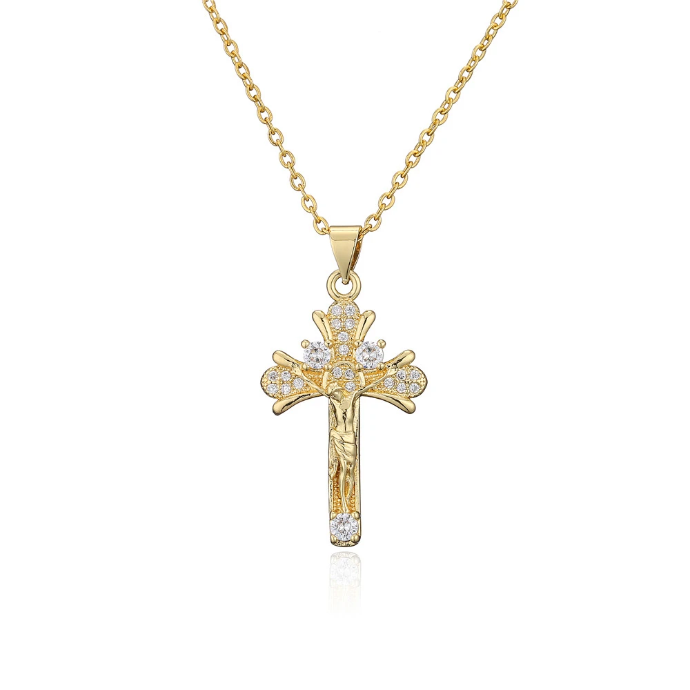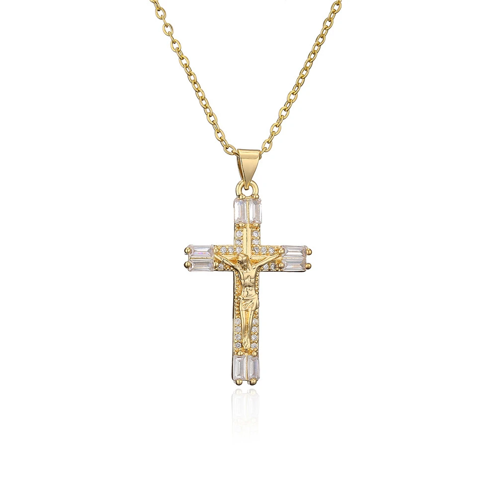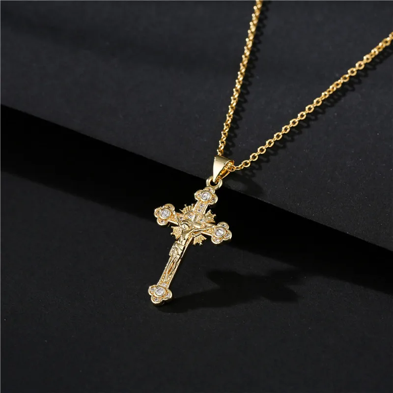 Золотое ожерелье с крестом Иисуса для женщин и мужчин, кулон в стиле хип-хоп, рок с изображением Иисуса, религиозный стиль