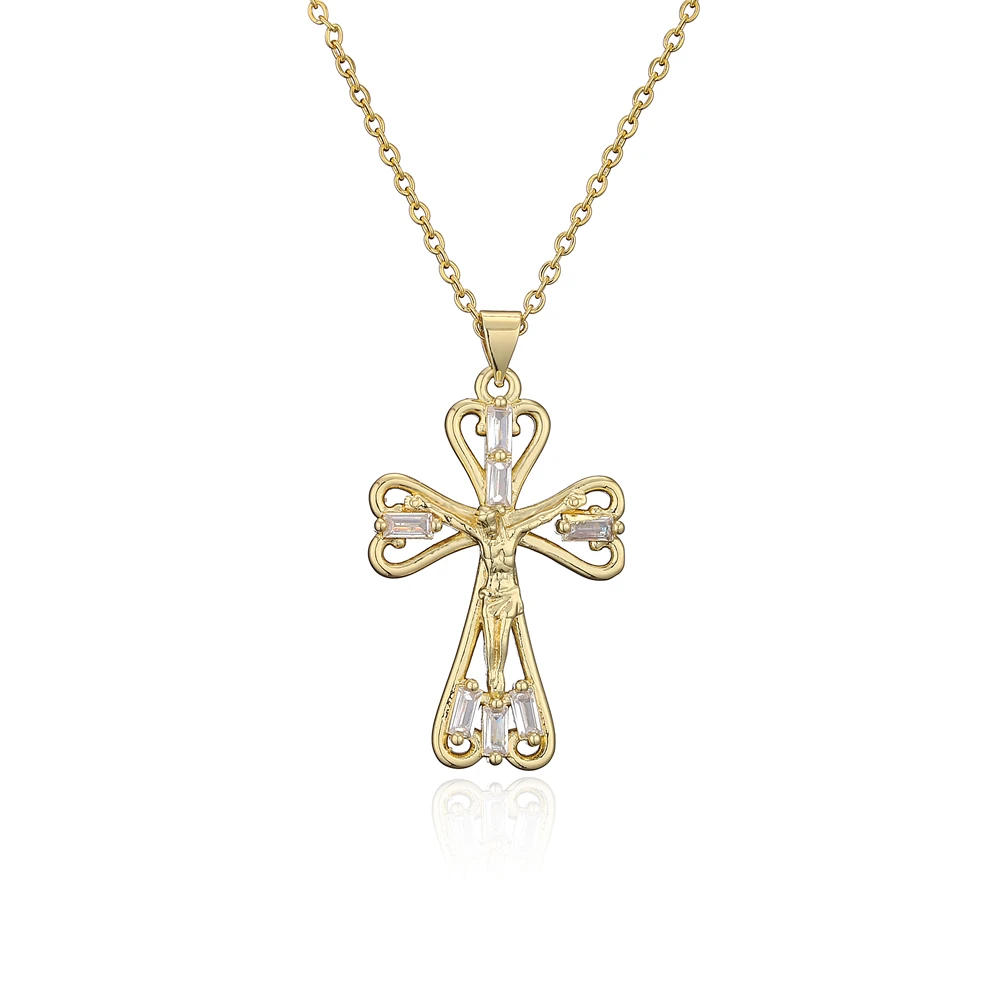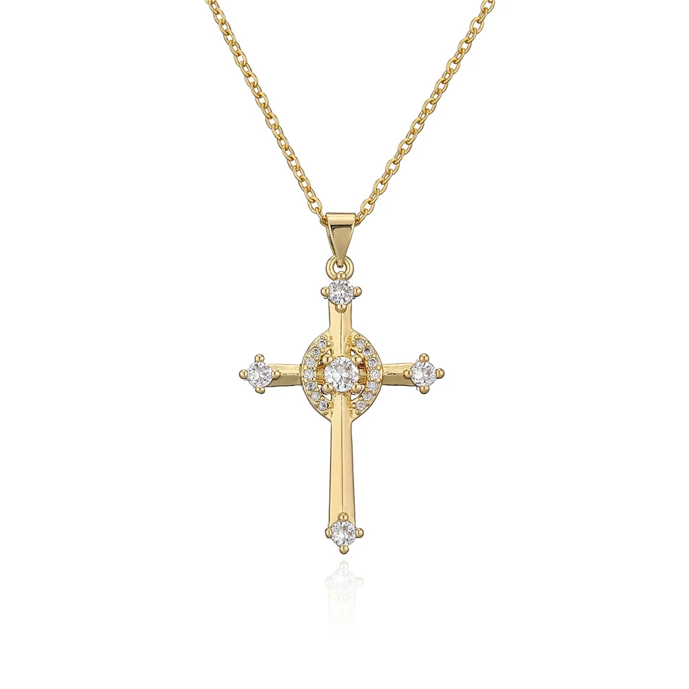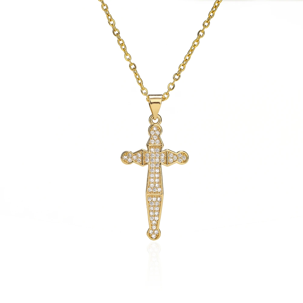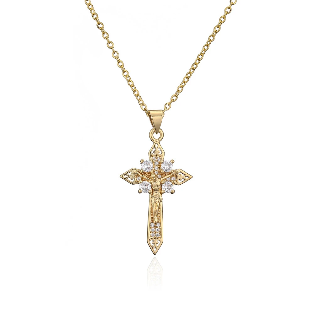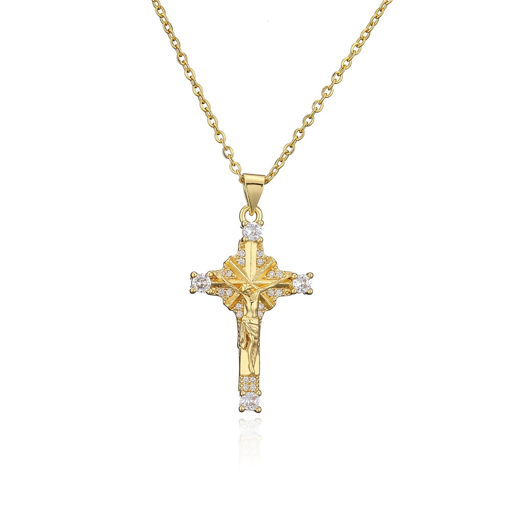 Золотое ожерелье с крестом Иисуса для женщин и мужчин, кулон в стиле хип-хоп, рок с изображением Иисуса, религиозный стиль