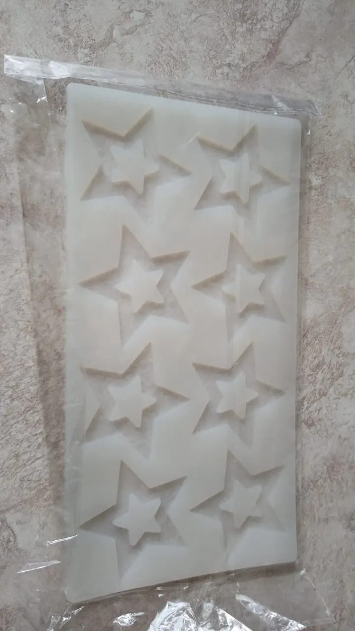 Форма соответствует описанию. Пришла довольно быстро. Все звёзды одного размера.