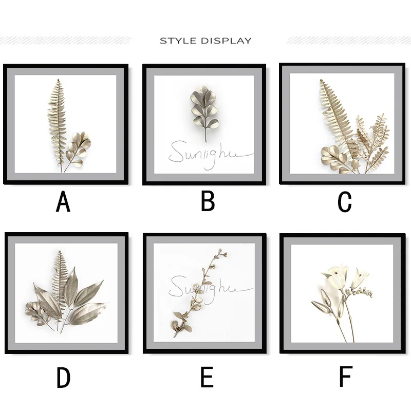 Настенный постер с изображением золотых растений, абстрактных цвето...