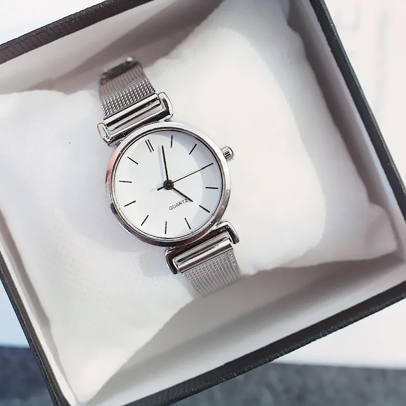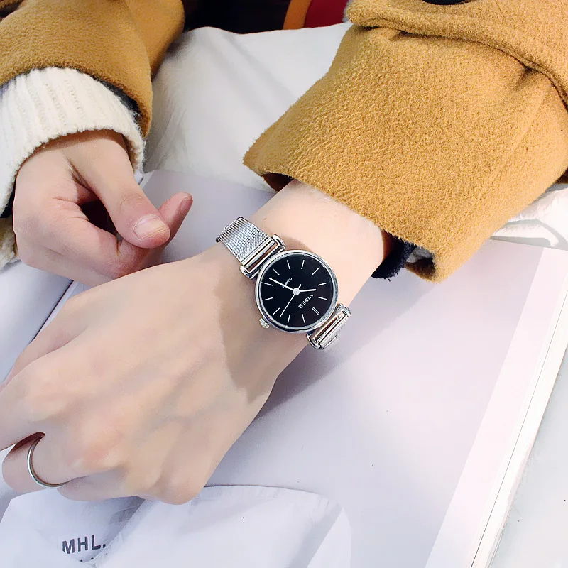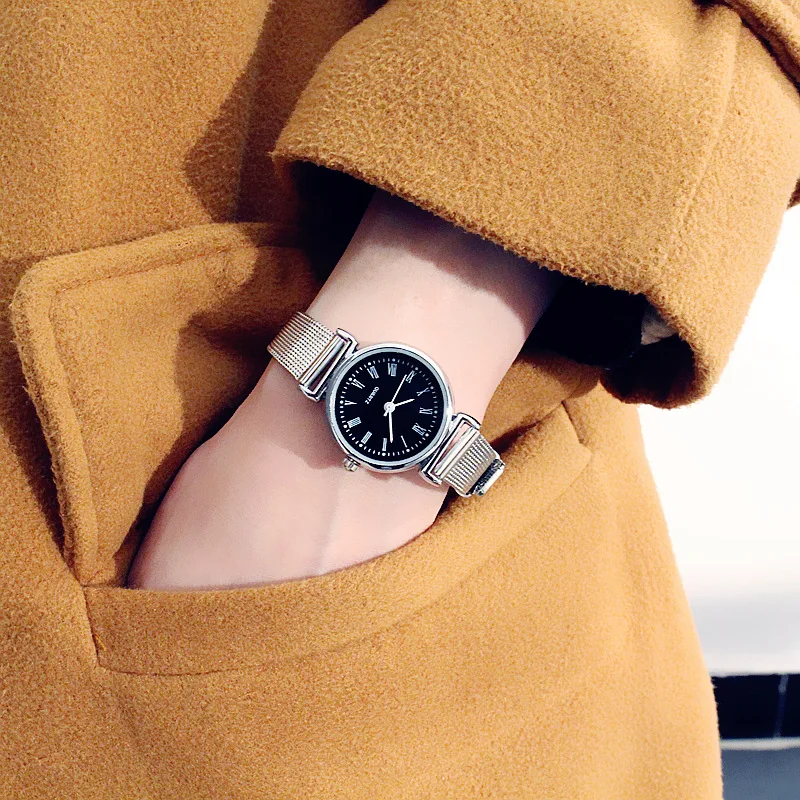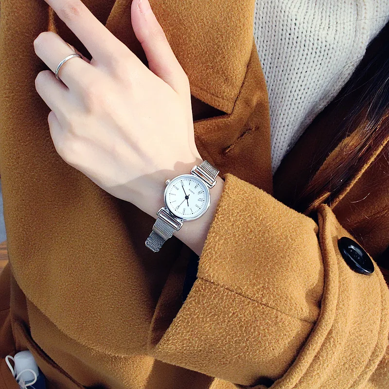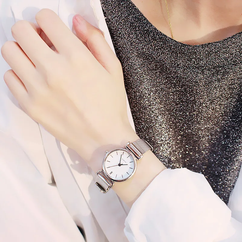 Хит продаж, модные часы для женщин Серебряный Нержавеющая сталь Пояс сетки Роскошные повседневные женские кварцевые часы Relogio Feminino Бесплатная доставка