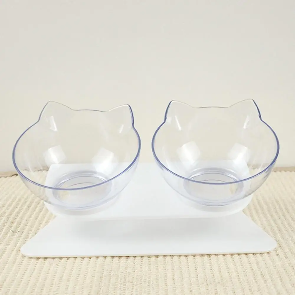 Двойная миска для кошек, собачья миска прозрачная, нескользящая, с ...
