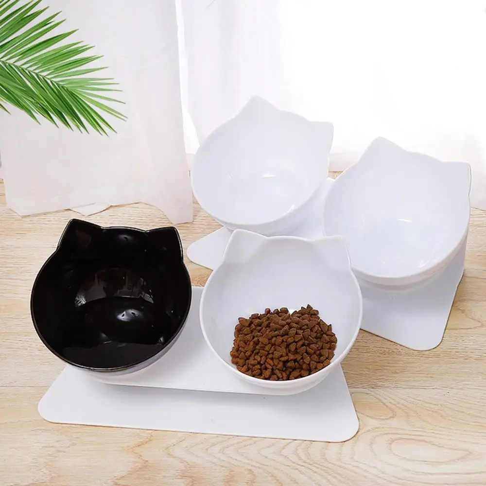 Нескользящая двойная миска для кошек с подставкой, миска для кормле...