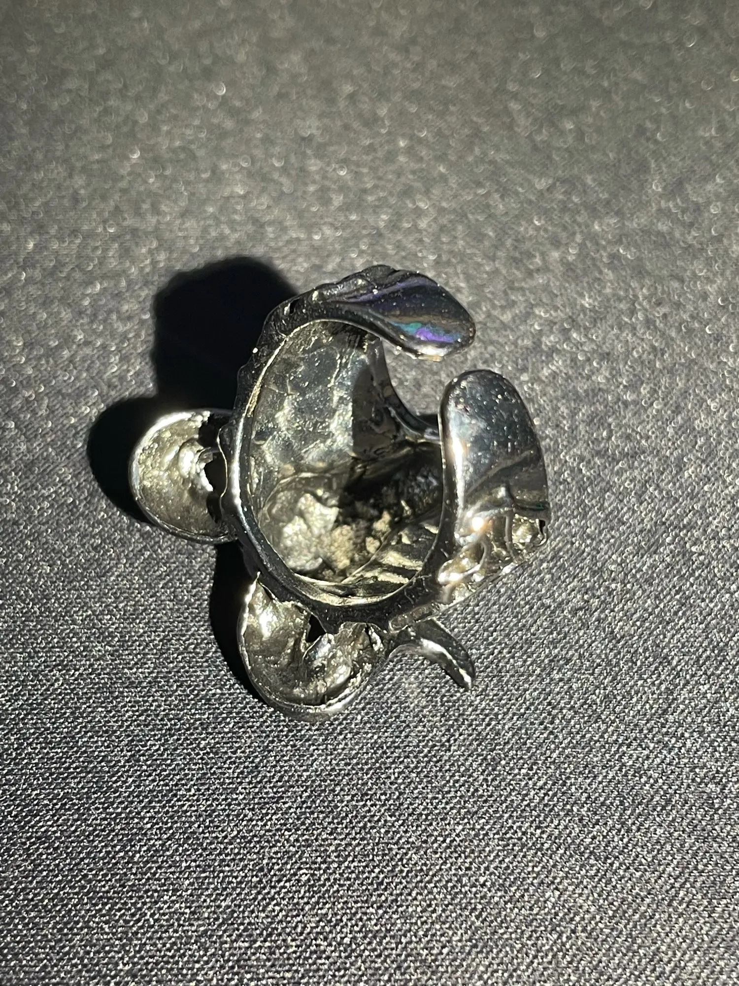 Классное кольцо, вроде из нержавейки и покрыто лаком, останется с тобой до могилы, потому что потерять такое огромное кольцо невозможно, размер регулируется, но на совсем тонкие пальцы запаса не хватит, на картинке конечно выглядит сильно лучше