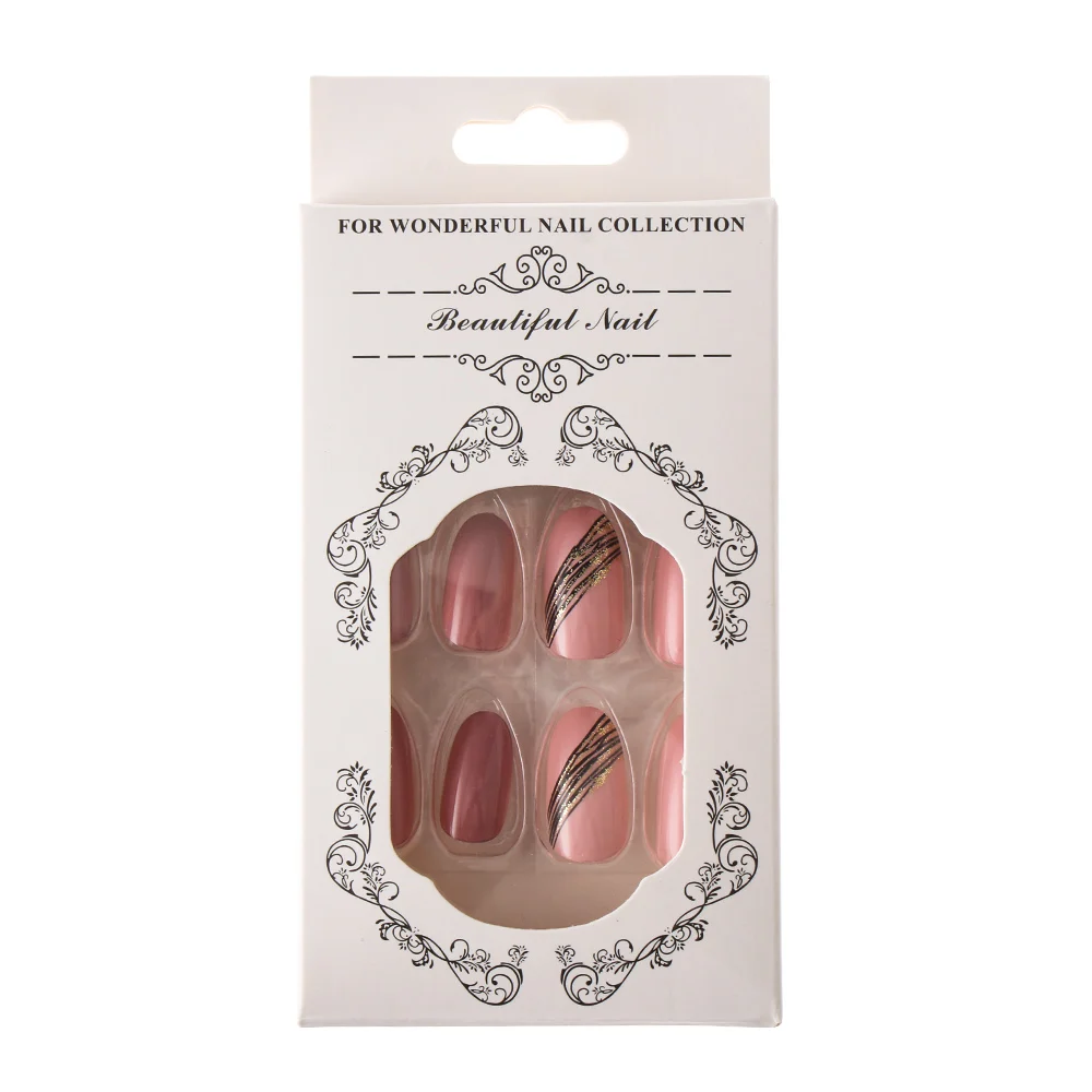 Накладные ногти, 24 шт., с блестками, телесного и розового цветов, ...