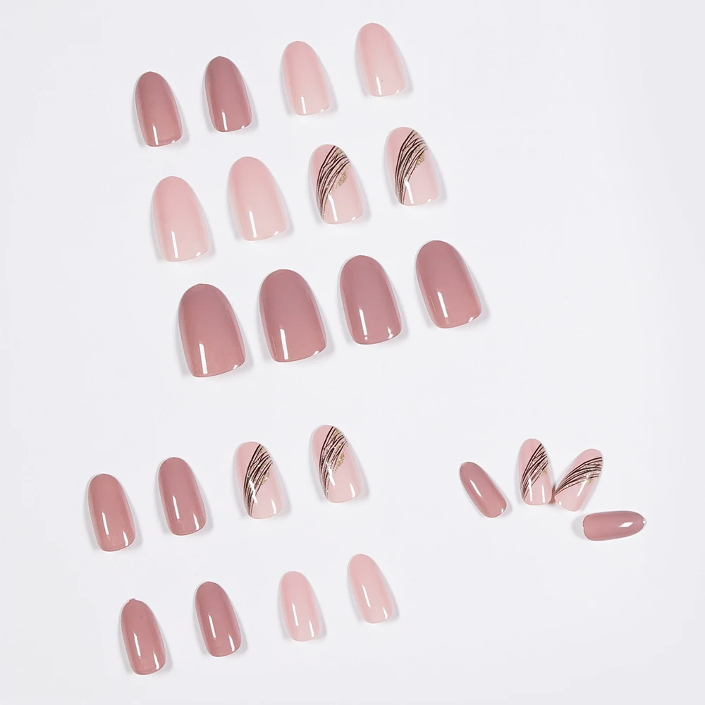 Накладные ногти средней длины, 24 шт., телесного и розового цветов,...