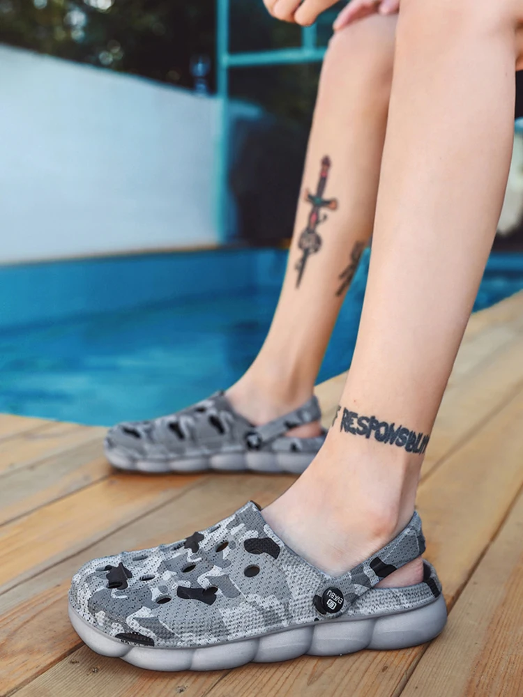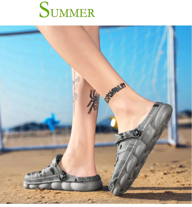 Мужские летние тапочки; Обувь с отверстиями; Сандалии; Дышащая Повседневная Уличная Нескользящая пляжная обувь; Модный светильник; Трендовый светильник; Прогулочная обувь