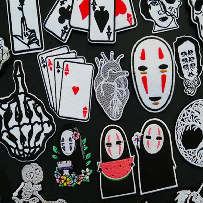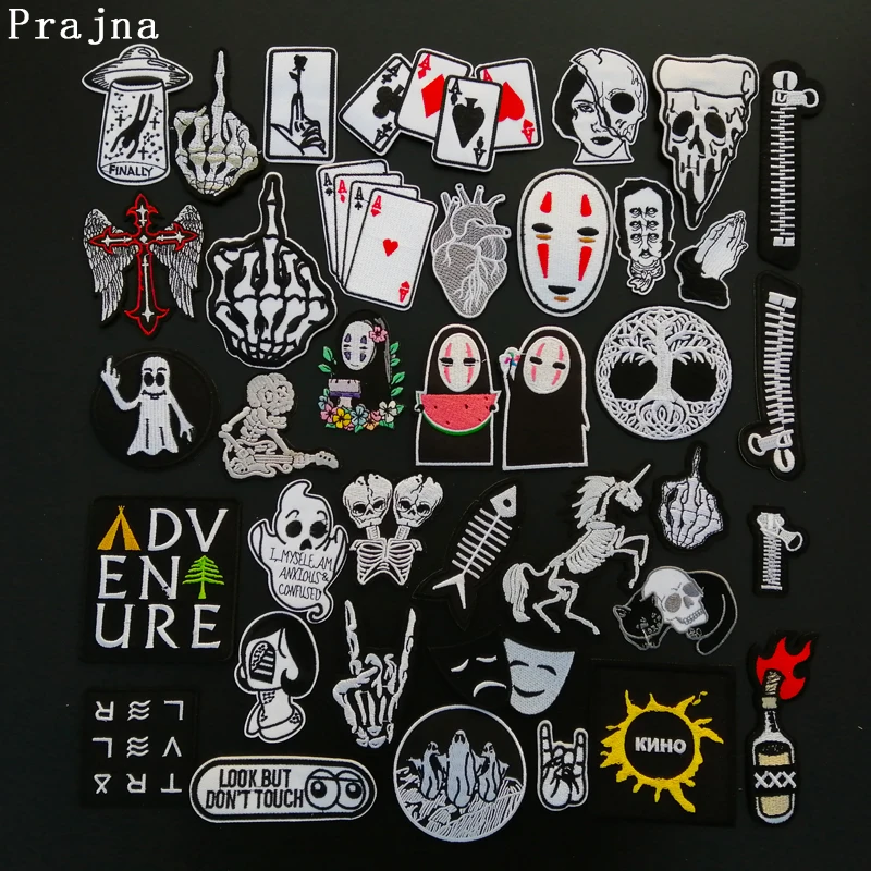 Prajna Железный на нет лица человек патч черно-белые вышитые патчи для одежды DIY Аппликация из букв патч Панк значок стикер Минимальный заказ: 1 шт. Размер: как показано на картинке