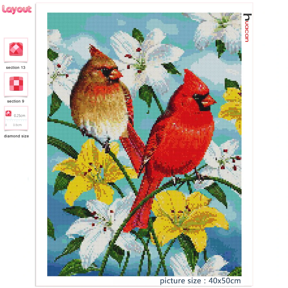 Алмазная вышивка Huacan, мозаика с вышивкой в виде птицы, цветов, животных, домашний декор