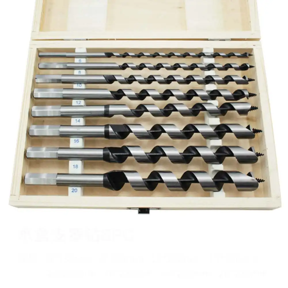 8 шт. 230 мм шестигранный набор сверл из углеродистой стали, деревянный чехол, обрабатываемая деревообрабатывающая револьверная дрель, дыропробивной дверной замок, сверлильный набор